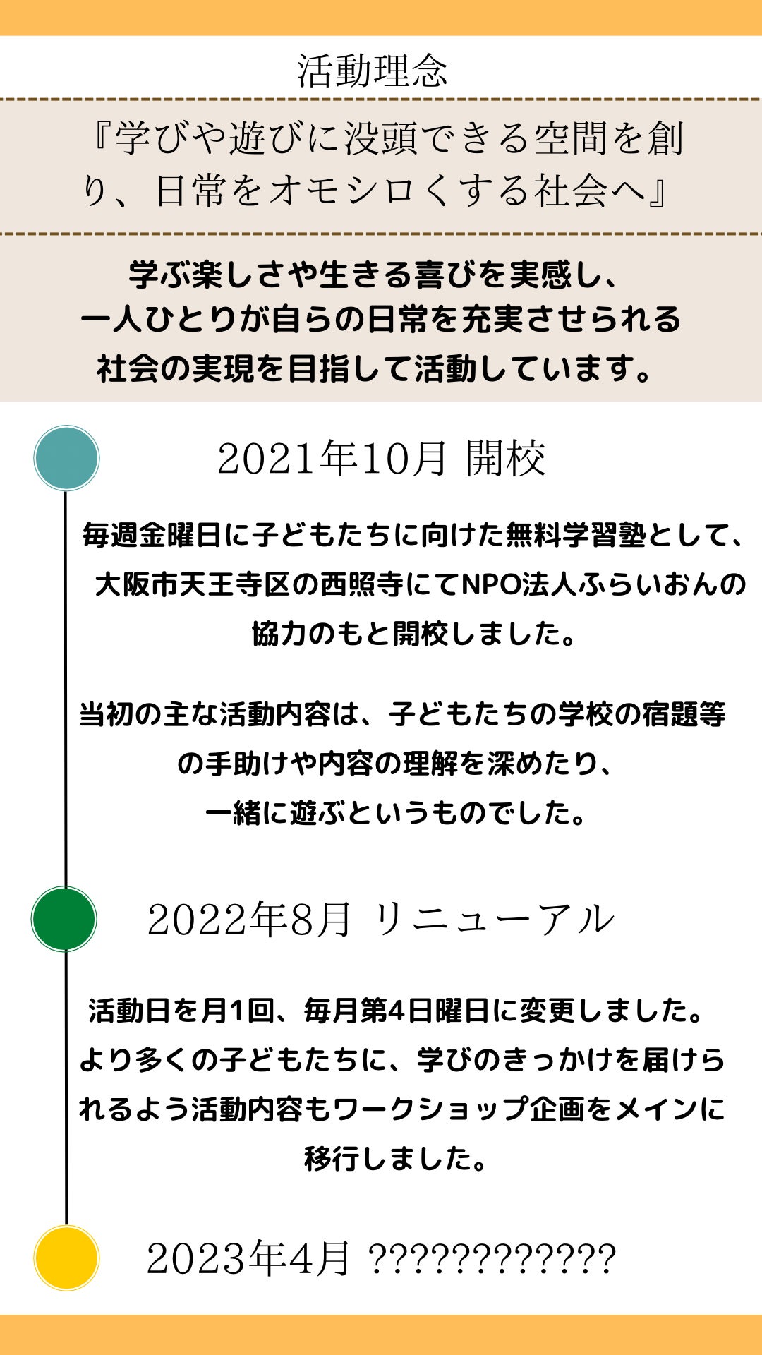 ※「NPO法人ふらいおん」は、寺子屋てらあの運営母体です。( NPO法人ふらいおん公式HP )