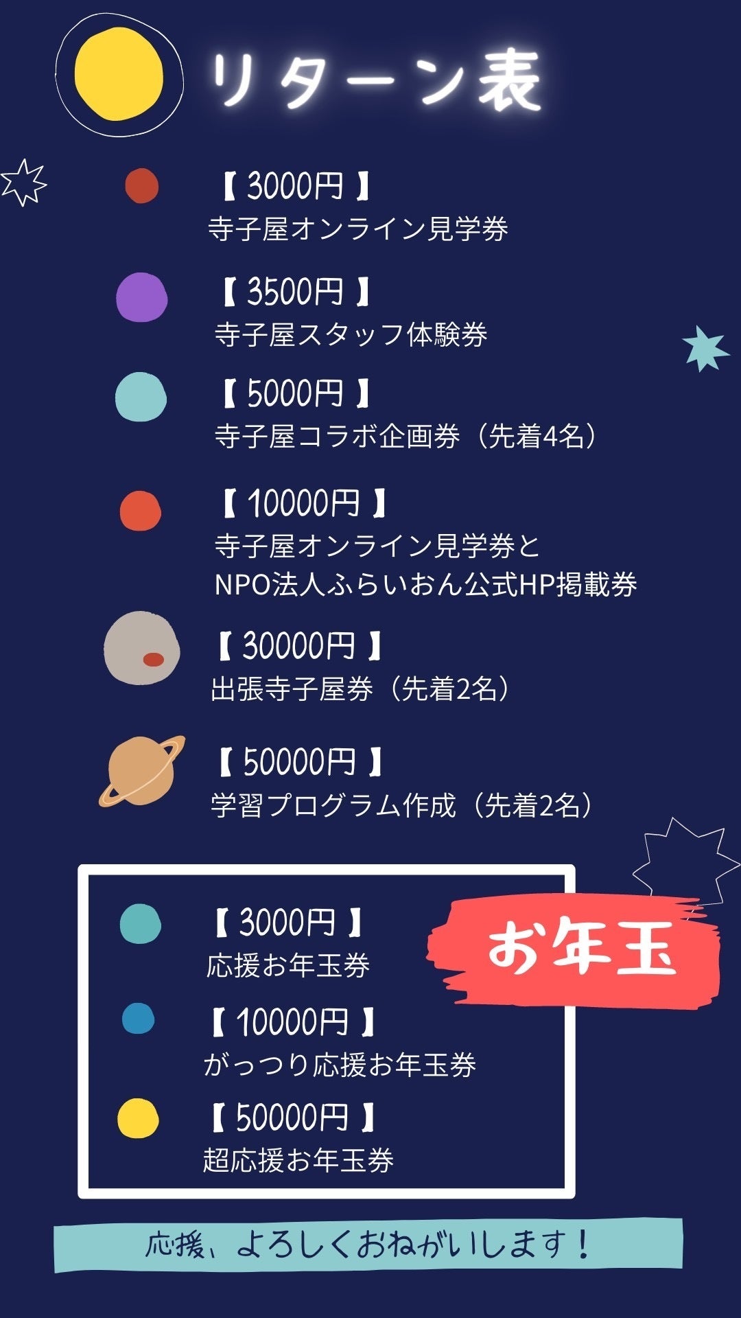 ※お年玉は、気持ちのご支援をいただくものです。