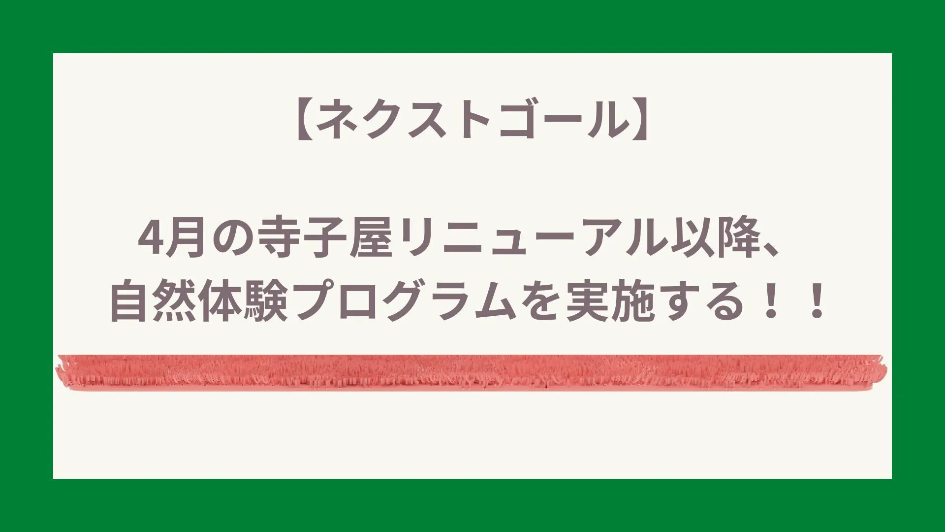 リニューアル後は、今までの寺子屋での企画に加え、子どもたちが体を動かし、自然と触れ合う体験を増やしたいと考えています。