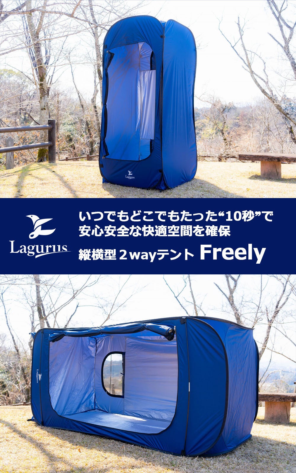 そんなアウトドアを気軽に楽しみたい愛好家の方へ、アウトドアブランド「Lagurus(ラグラス)」から、新発想の縦横型2wayテント【Freely(フリーリー)】が誕生しました。