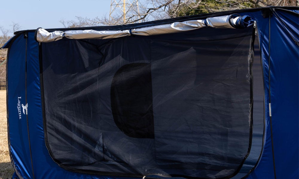 【Freely(フリーリー)】はテントの正面の入り口と背面の2つの窓にメッシュシートを設置。風を大きく取り込めるので室内に空気の循環が生まれ、湿気を排出しやすく快適に過ごせます。