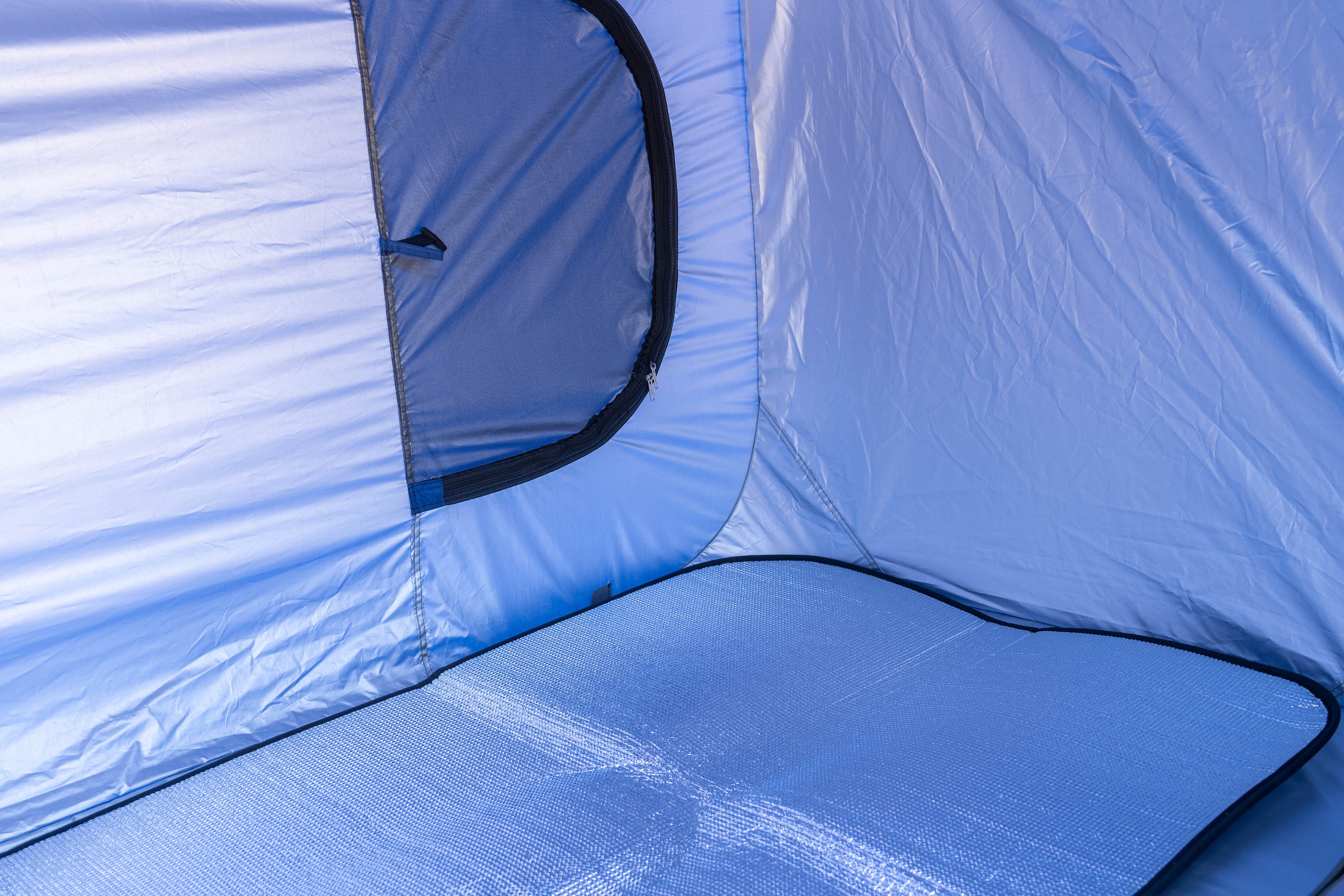 より快適にテント内で過ごしていただくために、縦でも横でも敷くことができる簡易マット(アルミシート)をご用意しました。