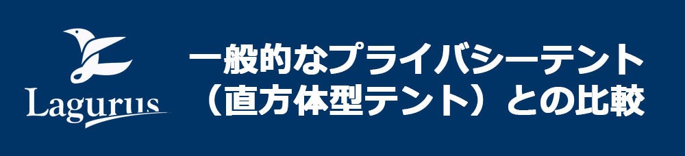 そのため、一般的なプライバシーテント(直方体型テント)と比べ、広さ、防水性・強度などで優れた商品です。