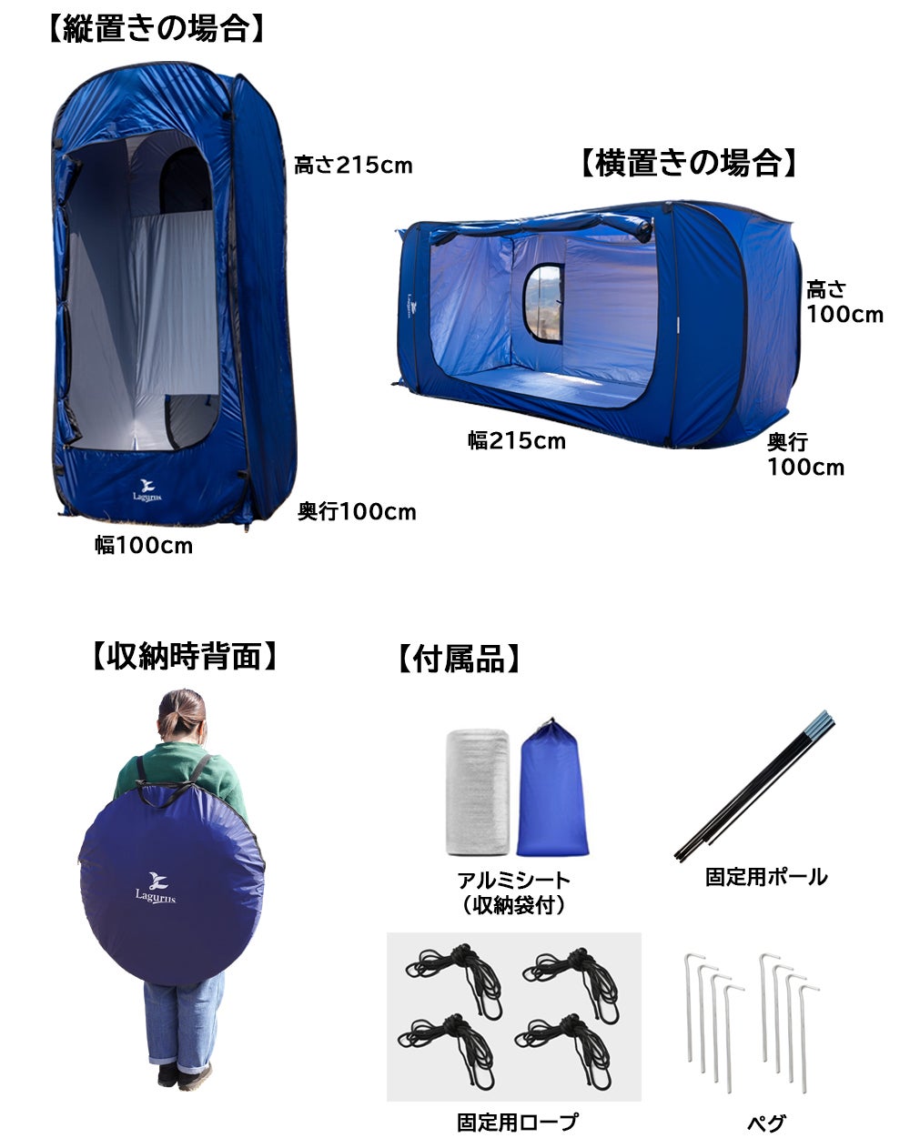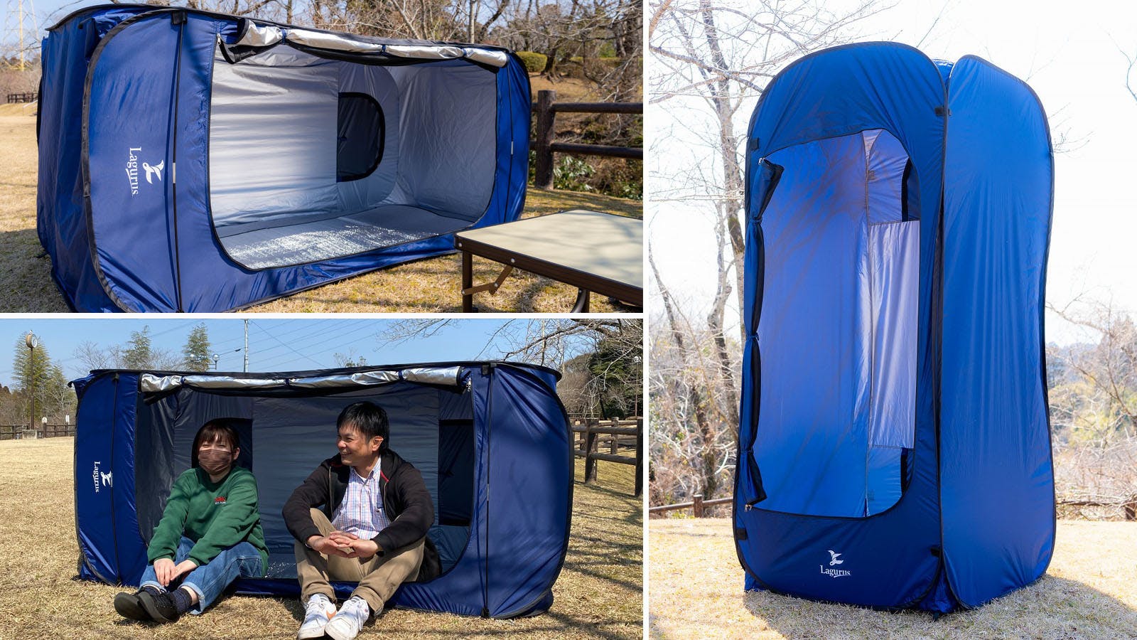 縦に使えば簡易型の更衣室に、横に使えばソロキャンプや海水浴用のシェルターに早変わり。