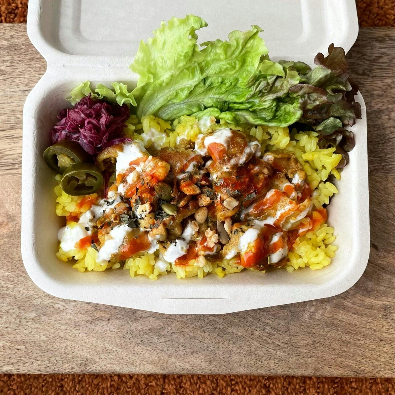 私たちのNYチキンオーバーライスは、岡山県産×アメリカンにこだわって作ったチキンオーバーライスです!