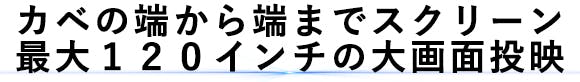 T03は最大120インチ(ヨコ約2.6m、タテ約1.5m)の大画面で投影可能。鮮明な超巨大画面がわずか数万円で手に入ります。