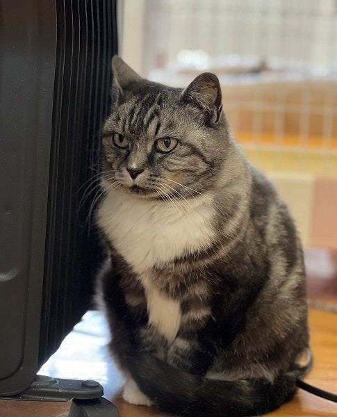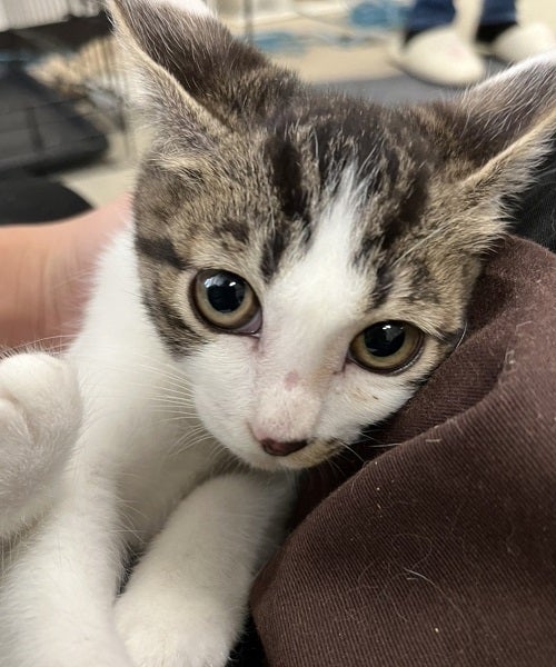 車のボンネットに入り込んでいたところを保護。保護主さまがそのまま飼おうとしましたが、ご家族さまに猫アレルギーが出たため断念、ティア小に入学となりました。