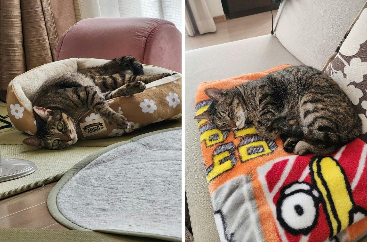 幸せそうにゆったりくつろいでいる猫ちゃんは、今年2月に卒業した【タマコちゃん】です!