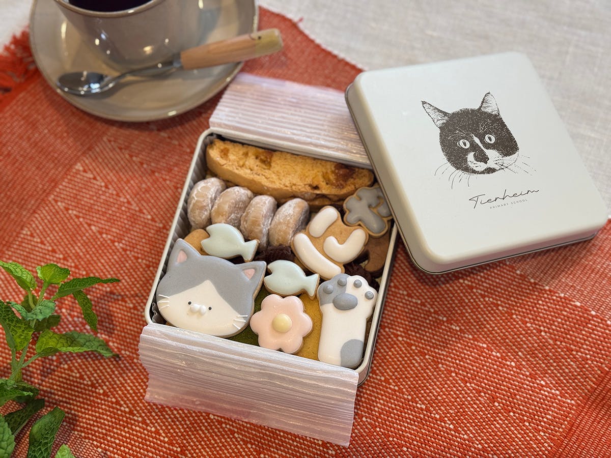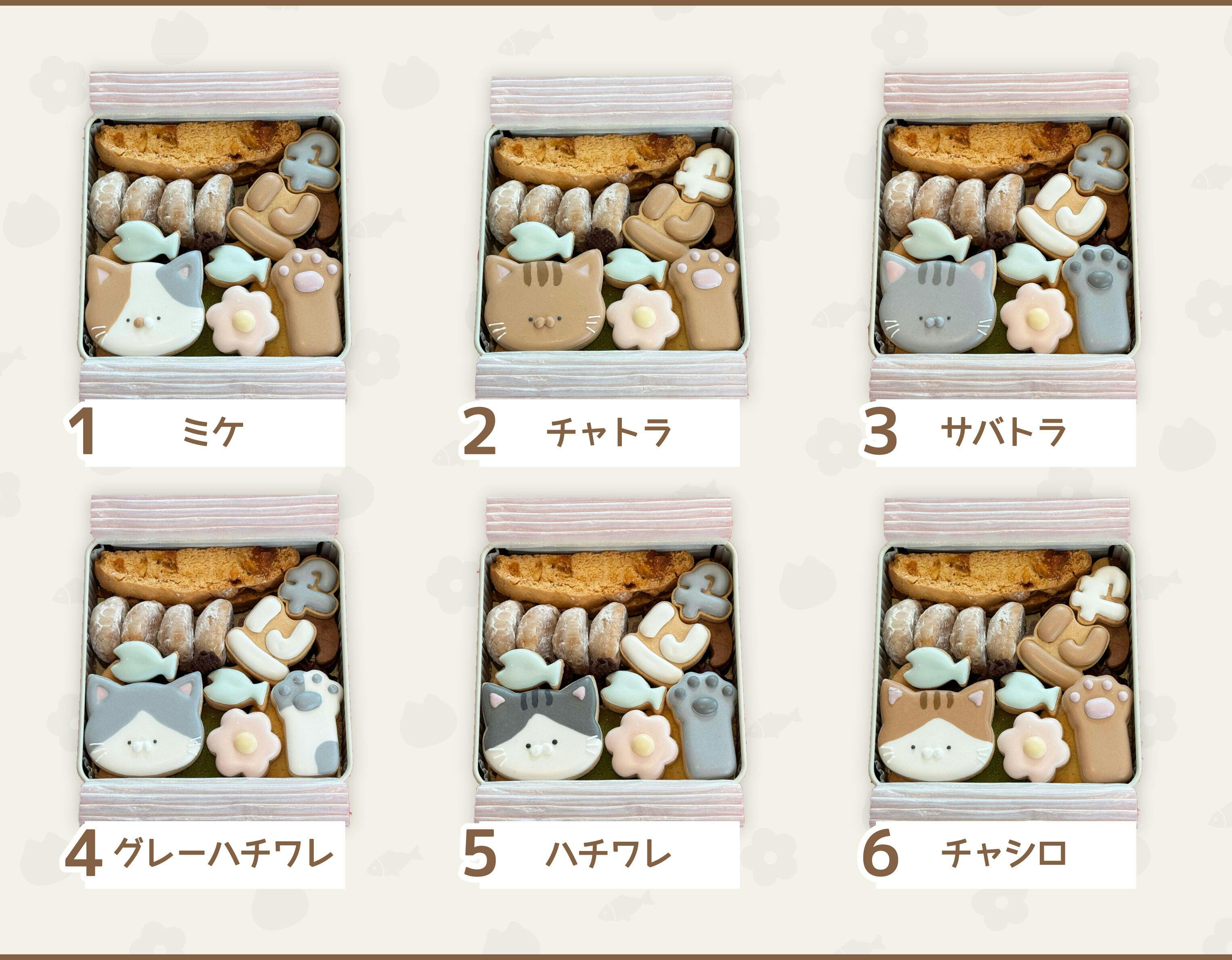 かわいいアイシングクッキーの下にも、猫型やお魚型のいろんな味のクッキーがぎっしり!