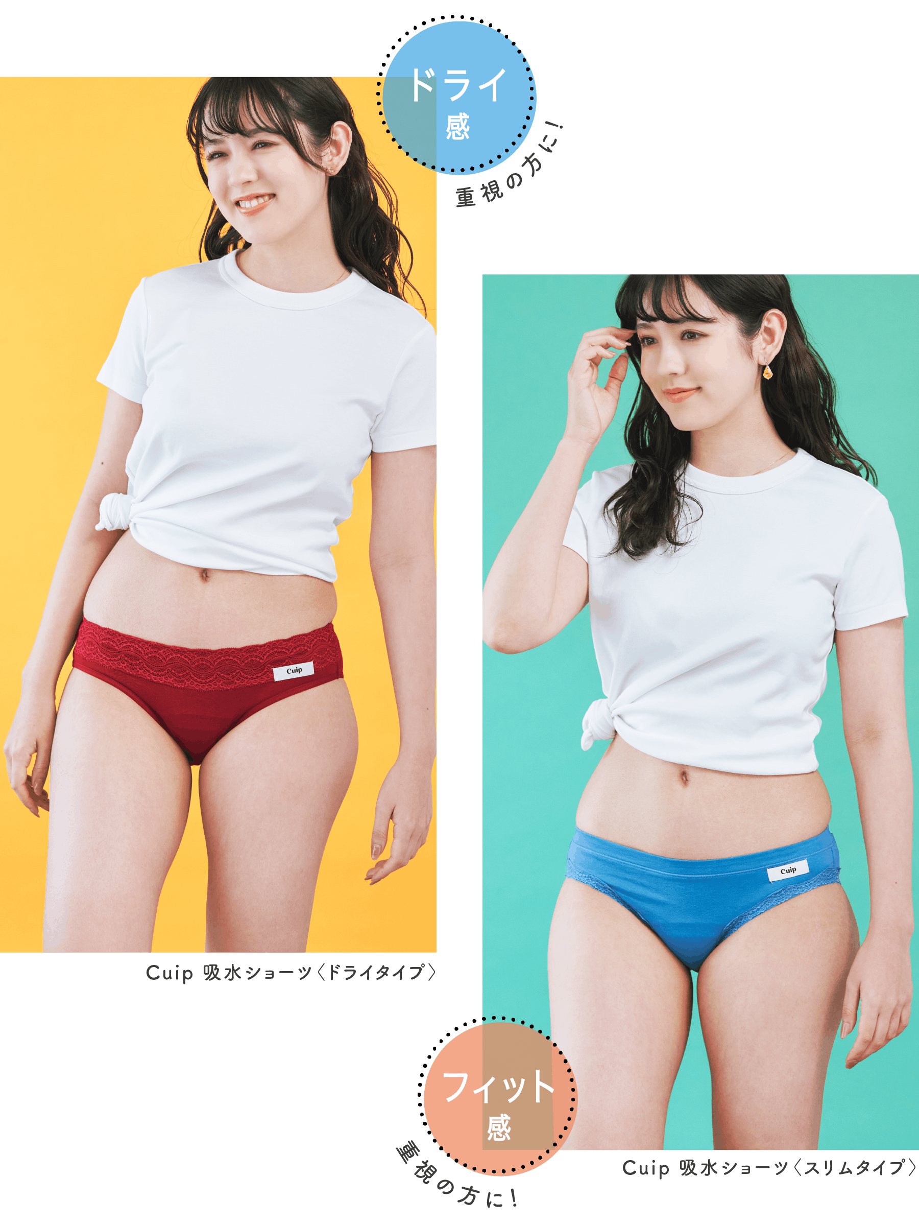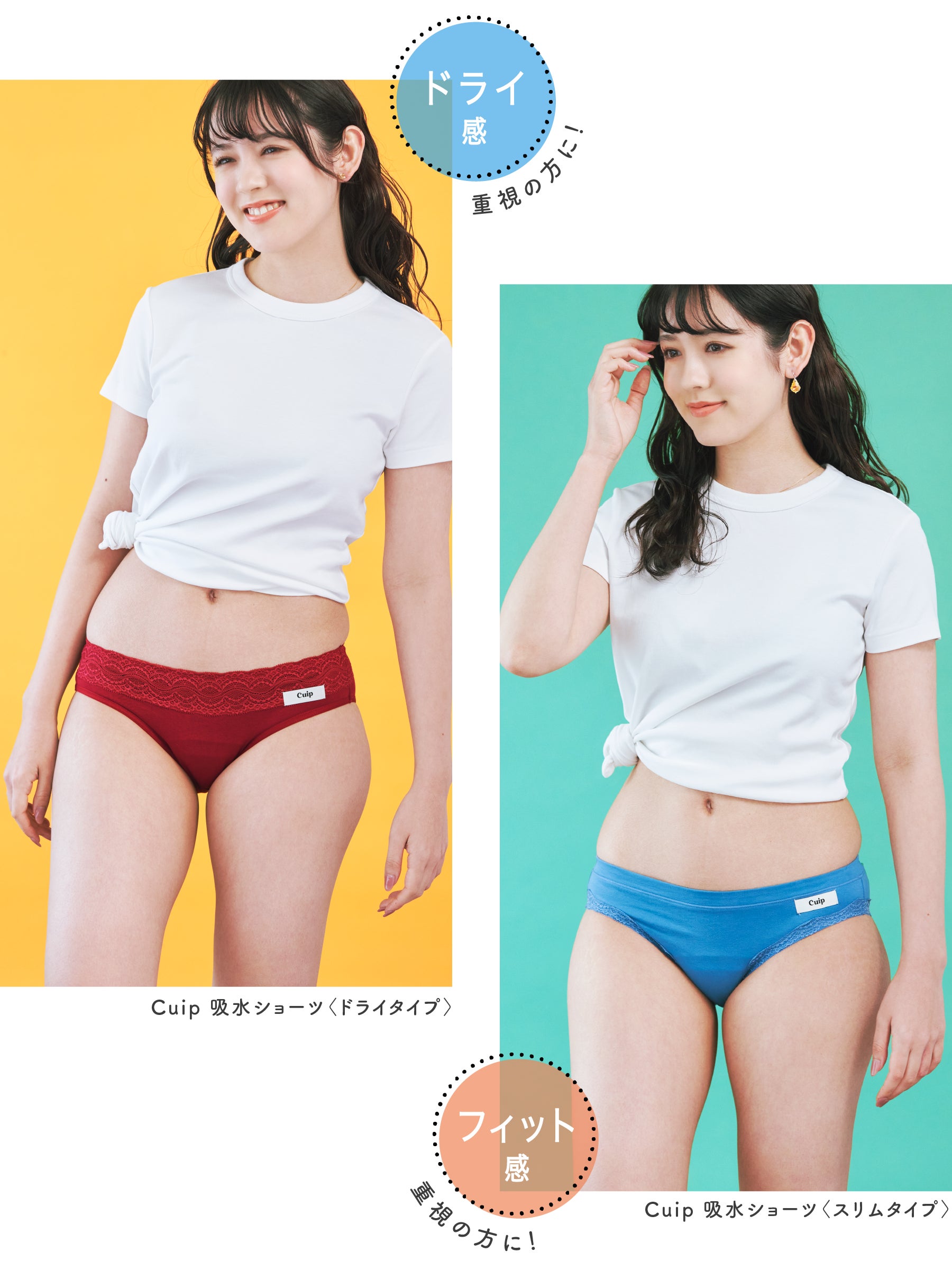 Cuipの吸水ショーツなら、朝はいてそのまま夜まで過ごせる安心の吸水量。