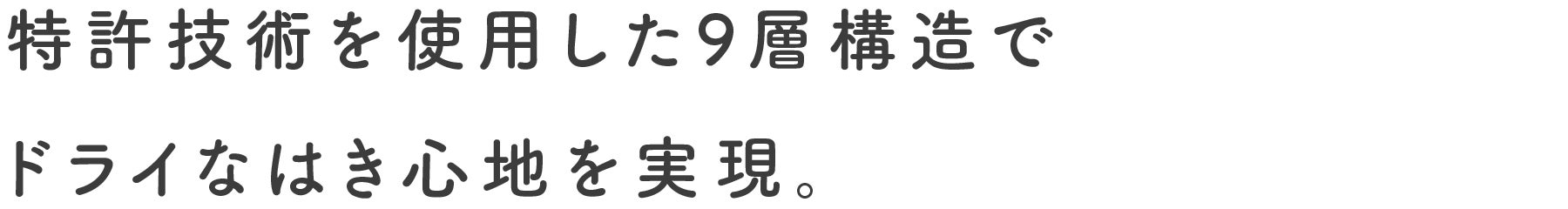 〈ドライタイプ〉は、特許取得済の技術を使用した9層構造のマチを採用。やや厚みがあるものの、吸収拡散性が高く、はき続けてもドライな肌触りが続きます。