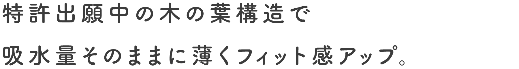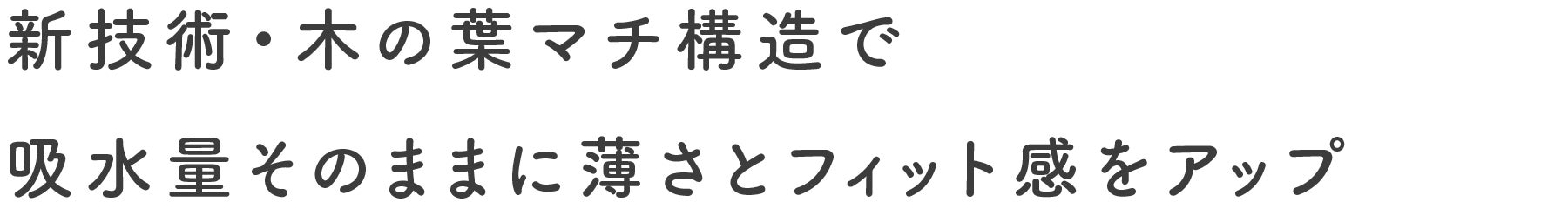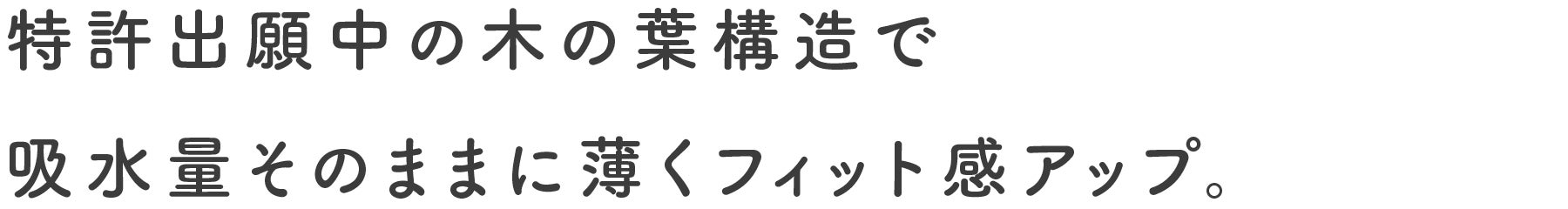 〈スリムタイプ〉は、吸水量そのままに特許出願中のより薄いマチ構造に。マチ部分がしなやかになり、しっかりフィットした着用感となります。