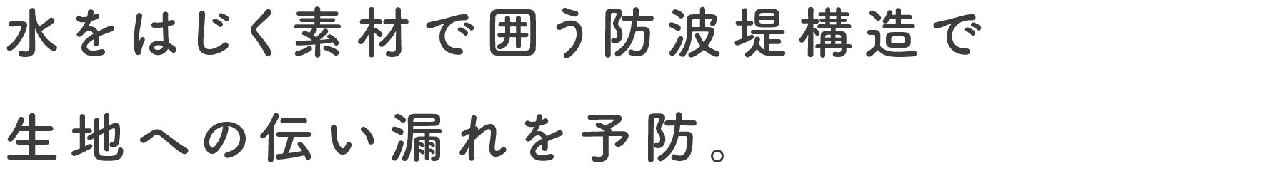 はい。漏れにくい仕様にこだわった商品開発を行っていますので、大丈夫です。マチの周辺に、足口部分や前後のつなぎからの伝いモレを防ぐ「防波堤構造」を採用することで、一度吸収した水分を逃しません。実際に開発スタッフが繰り返し着用して、改善・改良して作り上げられた構造ですので、安心してお使いください。