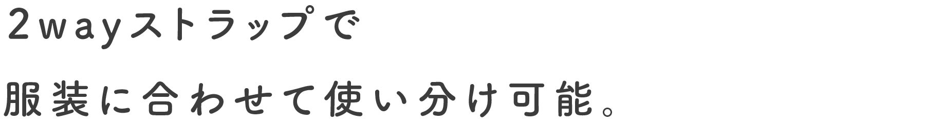 ストラップは背中側がフックで脱着可能なため、そのままストレートで着用もできますが、ストラップをクロスさせ、服装に合わせたファッションのワンポイントにもできる2way仕様になっています。