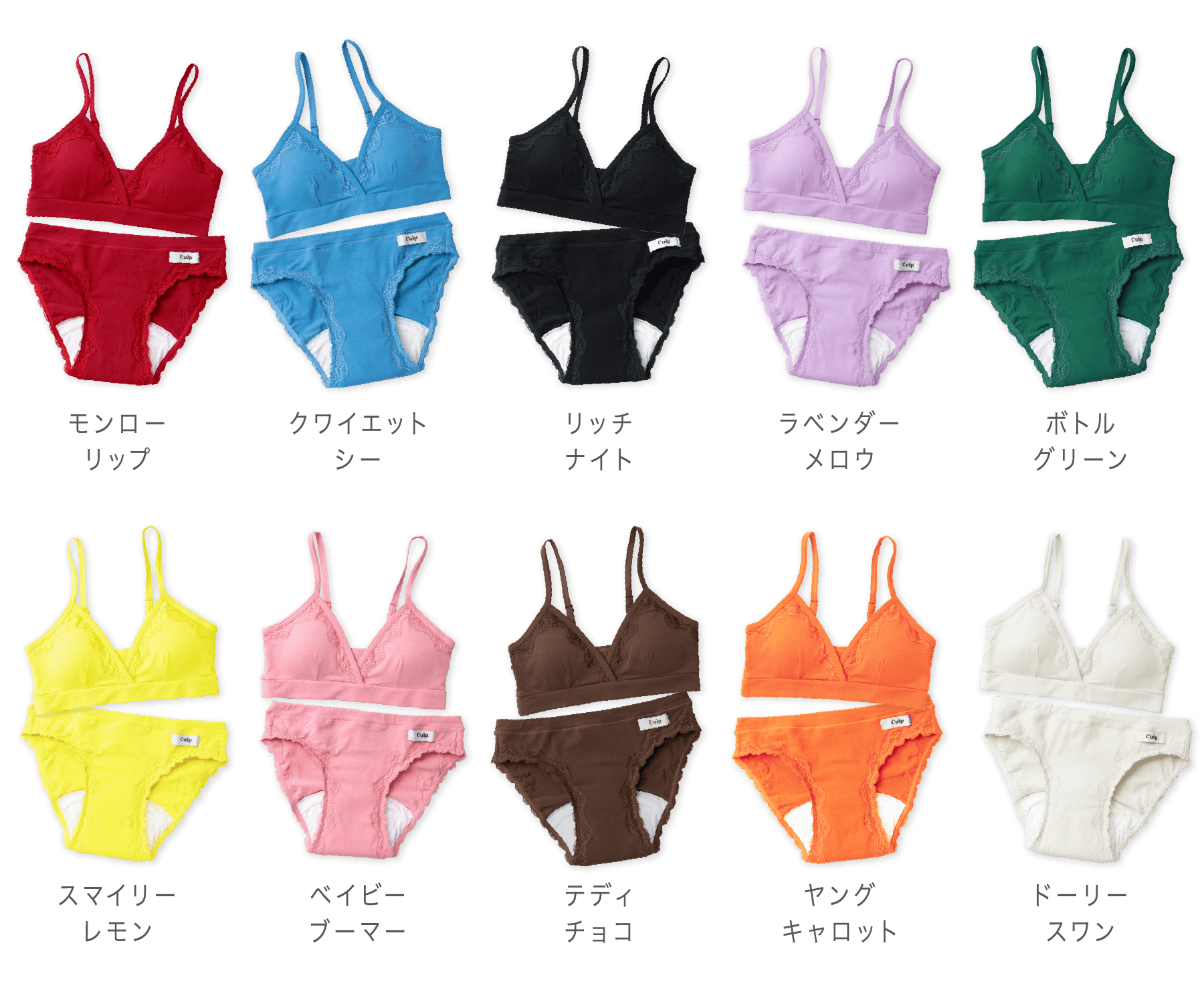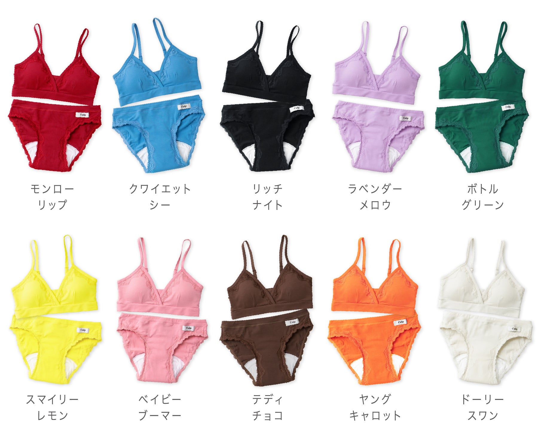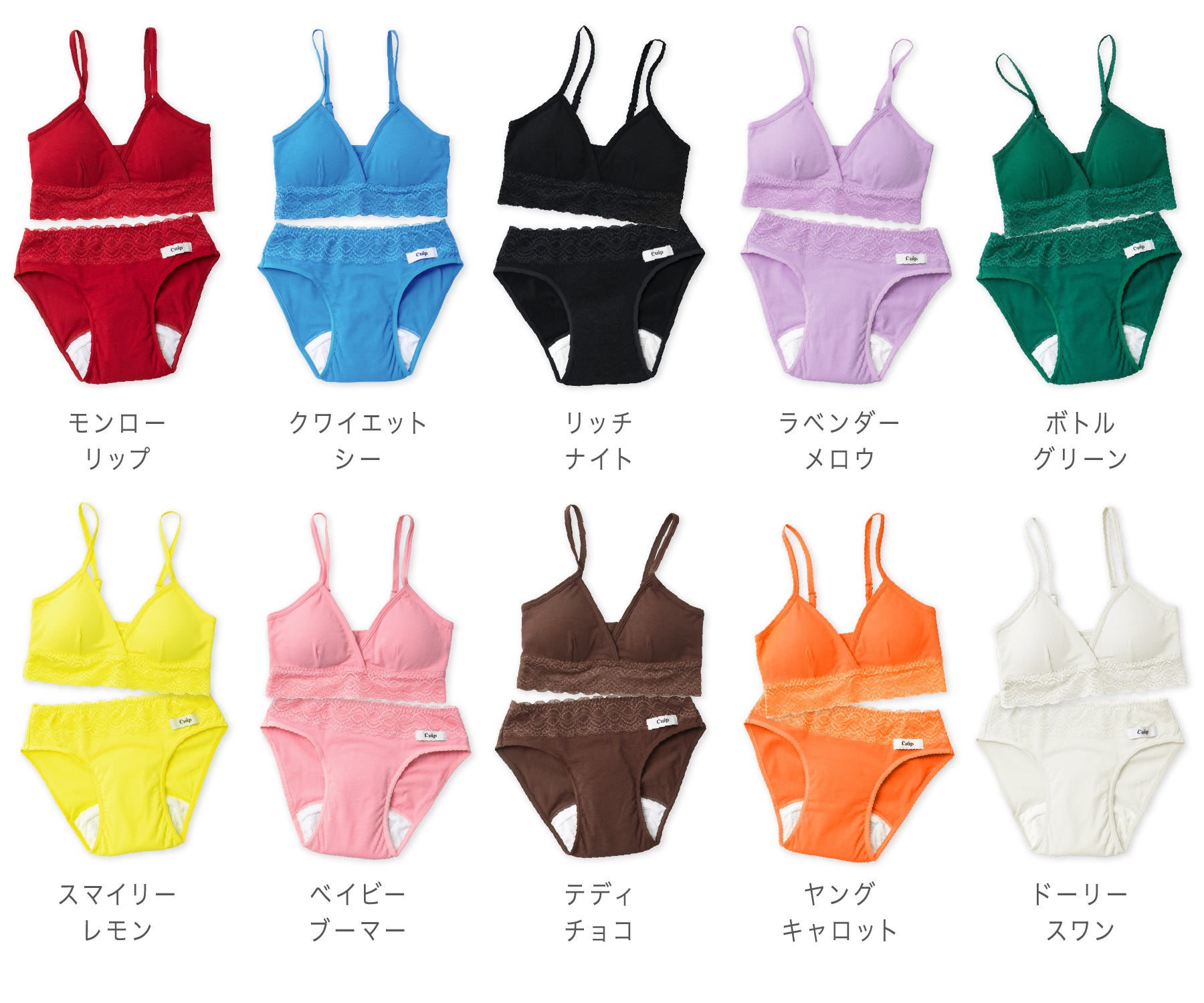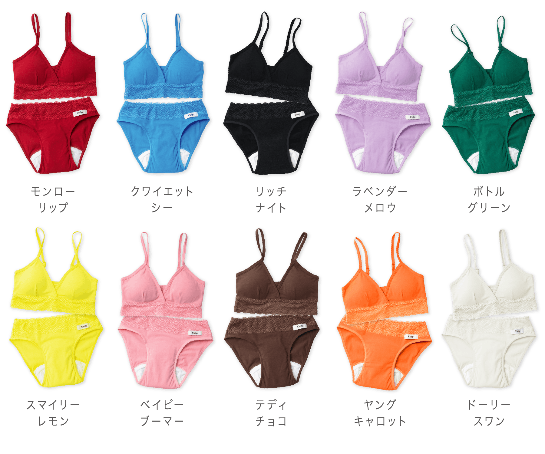 これまで漏れにくさとドライな着心地で好評いただいていた吸水ショーツに、デザイン・カラーを揃えたソフトブラをセット。憂鬱なあの期間もかわいくいたい女性の要望にお応えします。