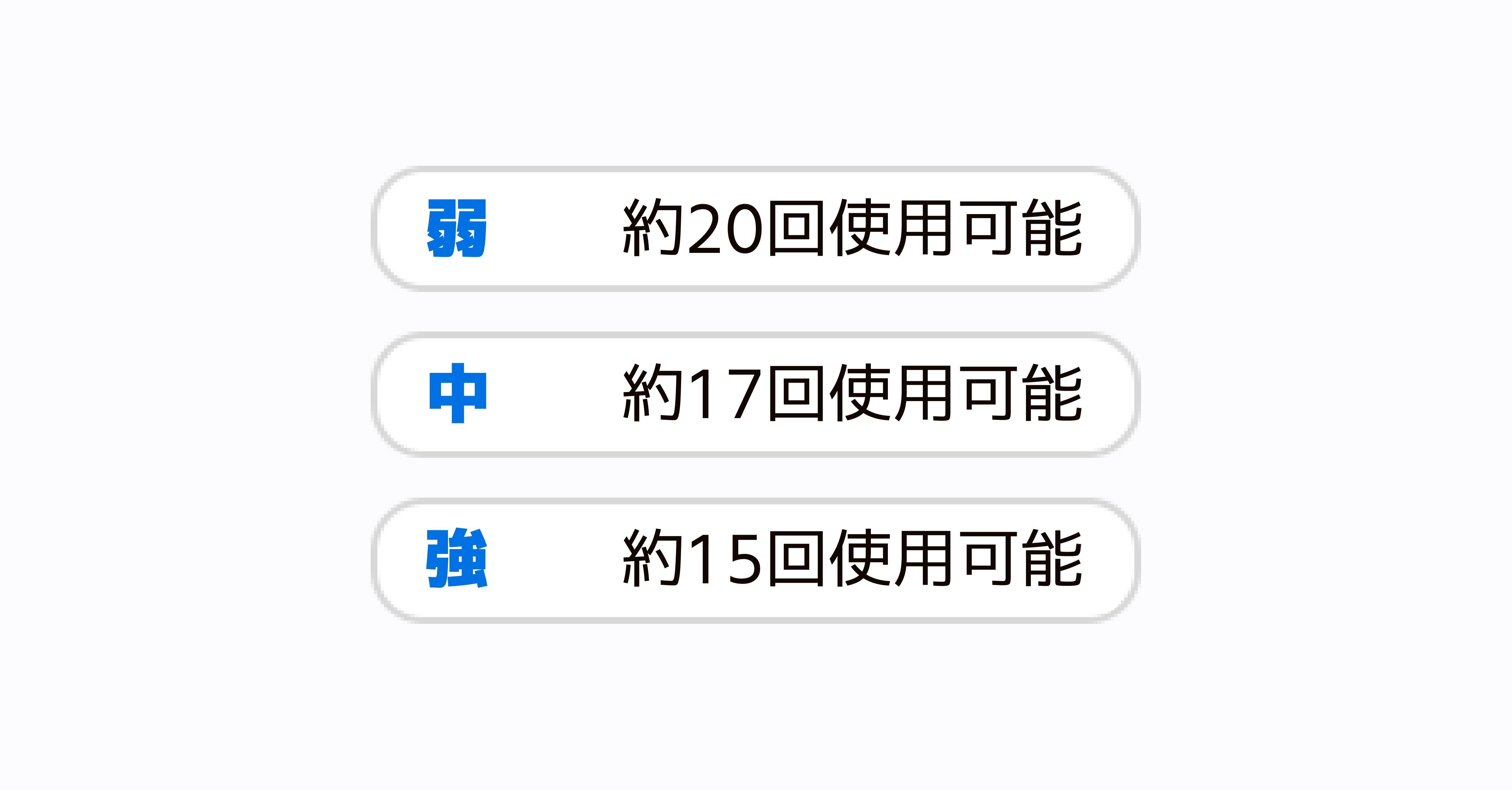 ※バッテリーの使用環境(気温)や寿命によって使用回数は変わる場合があります。
