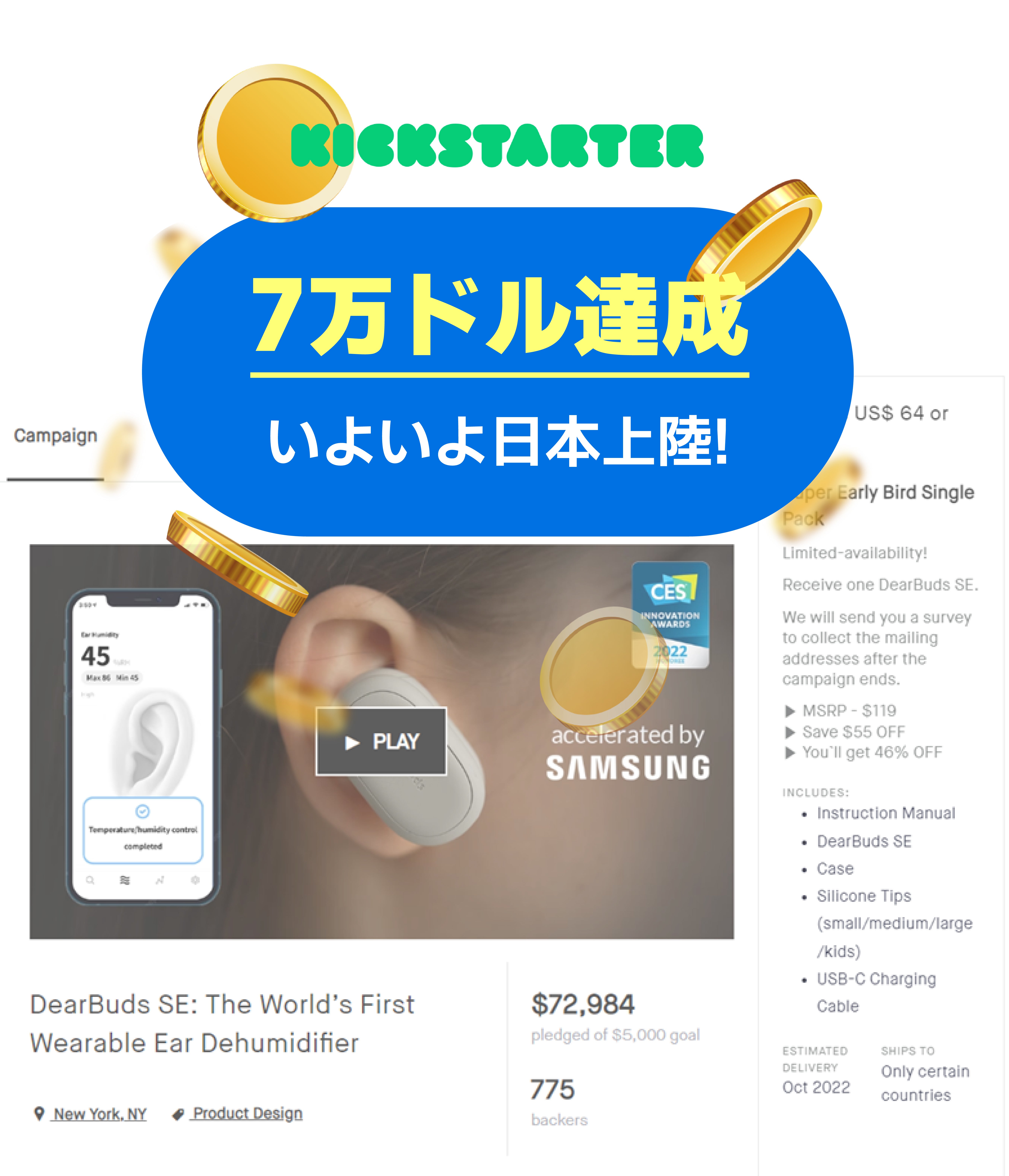 アメリカのKickstarterで775名のサポーターから$72,984(約950万円)の支援とCES 2022 Innovation Awardsも受賞した【DearBuds SE】!