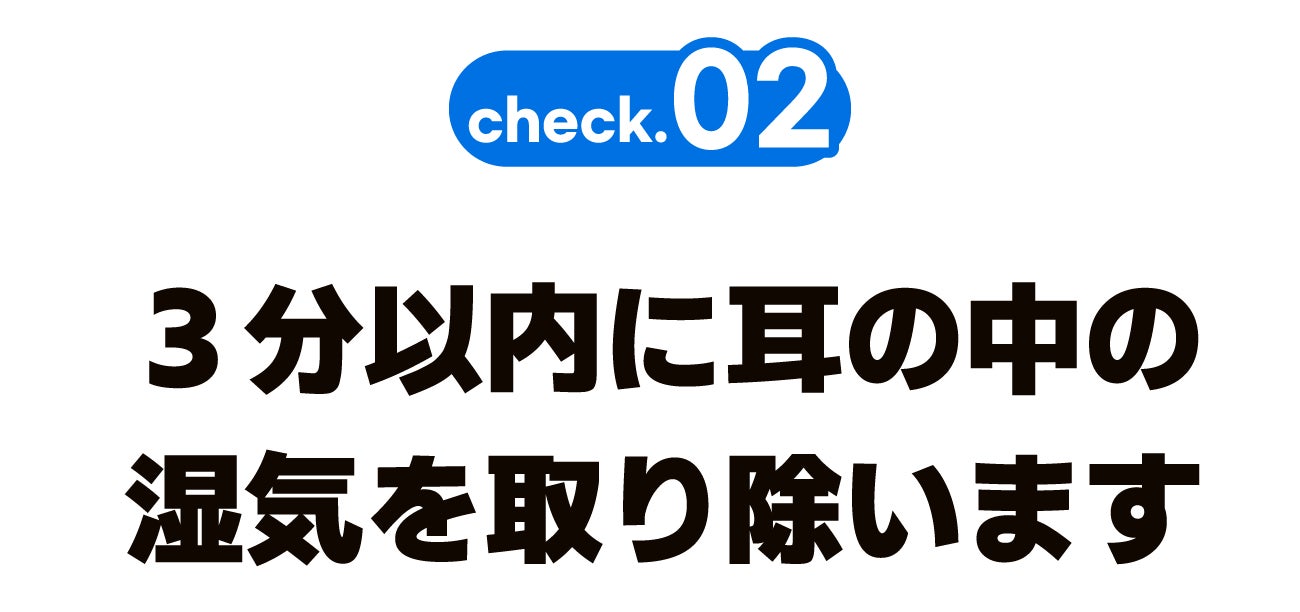 測定含めて除湿まで「ただ3分」。3分以内に耳の中の湿気をスッキリ摂り抜けるDearBuds SEだけの湿気除去技術です。