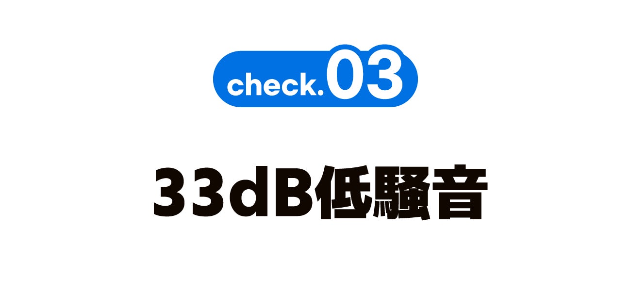 超小型の磁気浮上ファンを採用、イヤーチップにはノイズフィルターを搭載し低騒音を完成しました。強モードでもささやき声と同レベルの33dB!