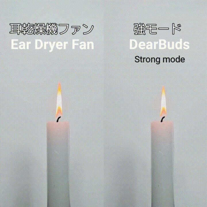 DearBuds SEによる耳乾燥約3分。一個で交互に乾燥するのに十分なのでよりお安く購入したい方向け。