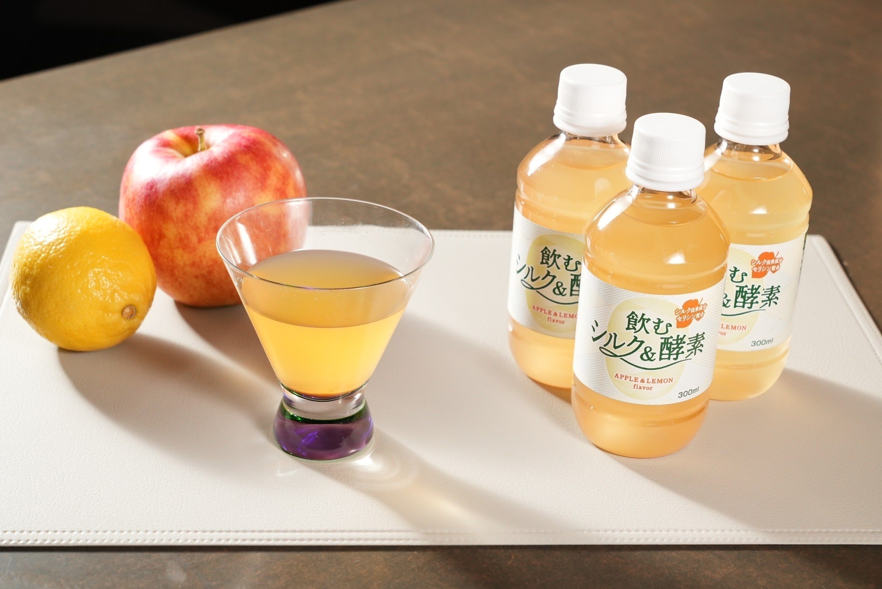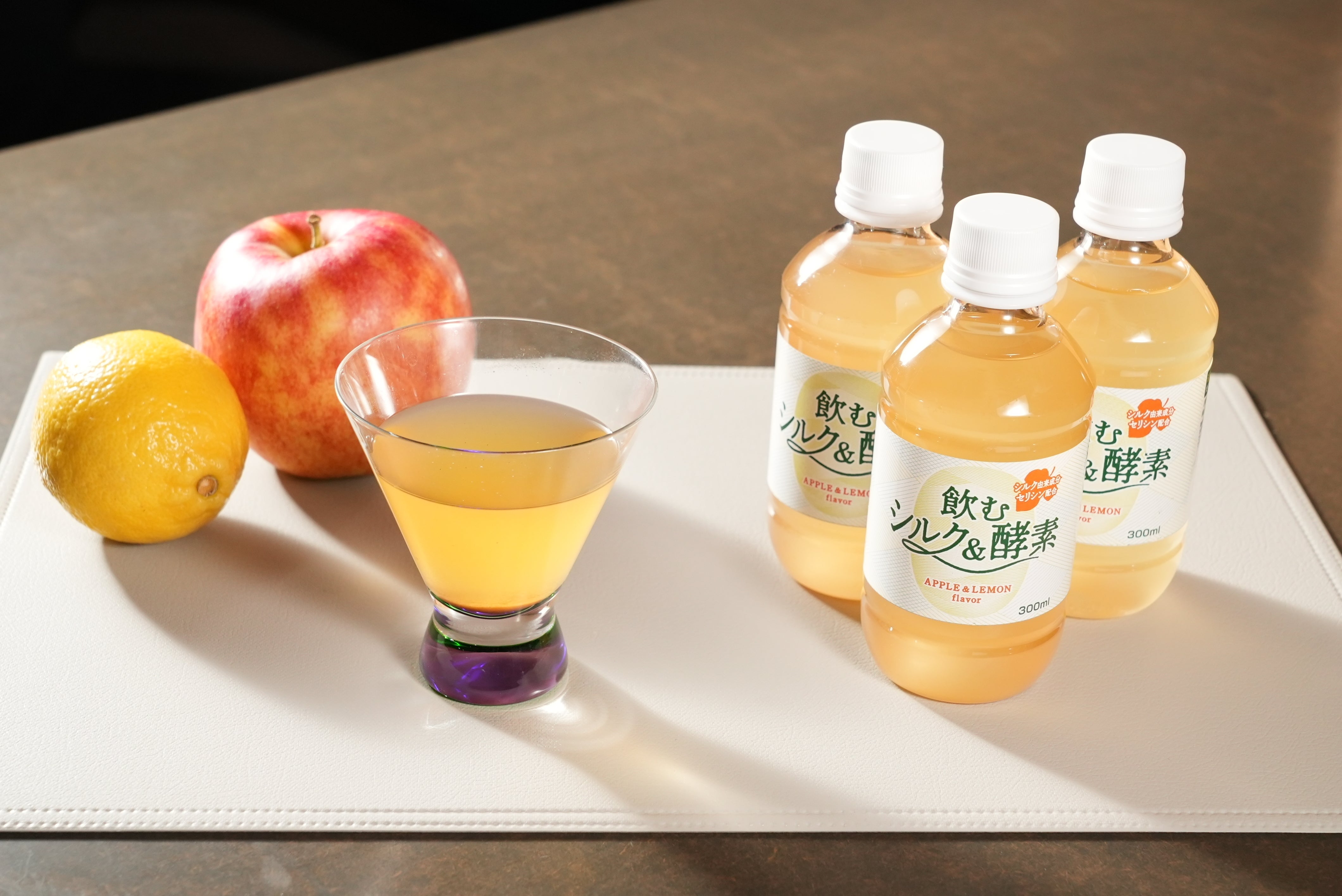 また、今回、一緒にセリシン配合の飲み物も用意しました。その名も『飲むシルク&酵素』(シルクドリンク)を用意しました。