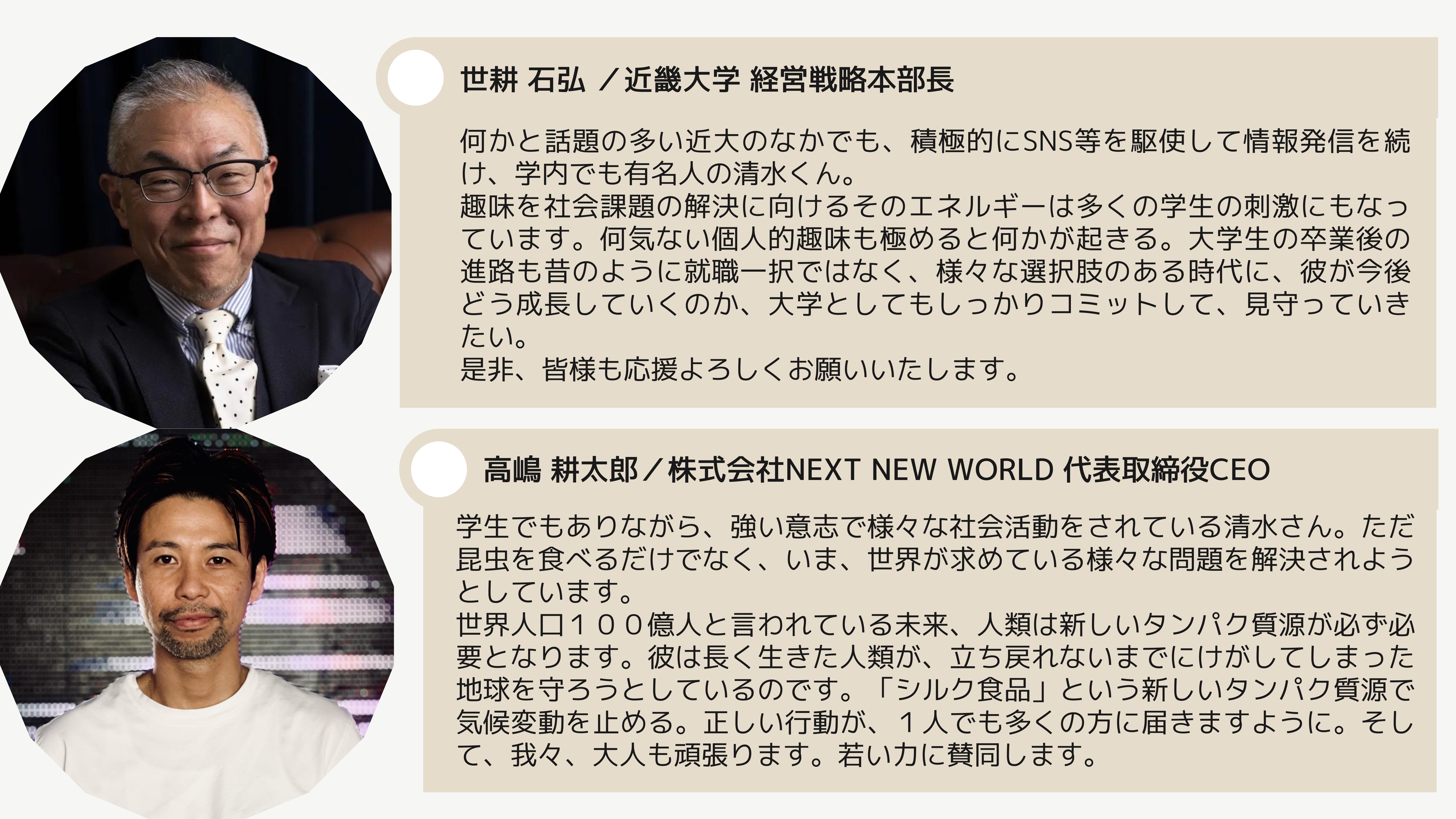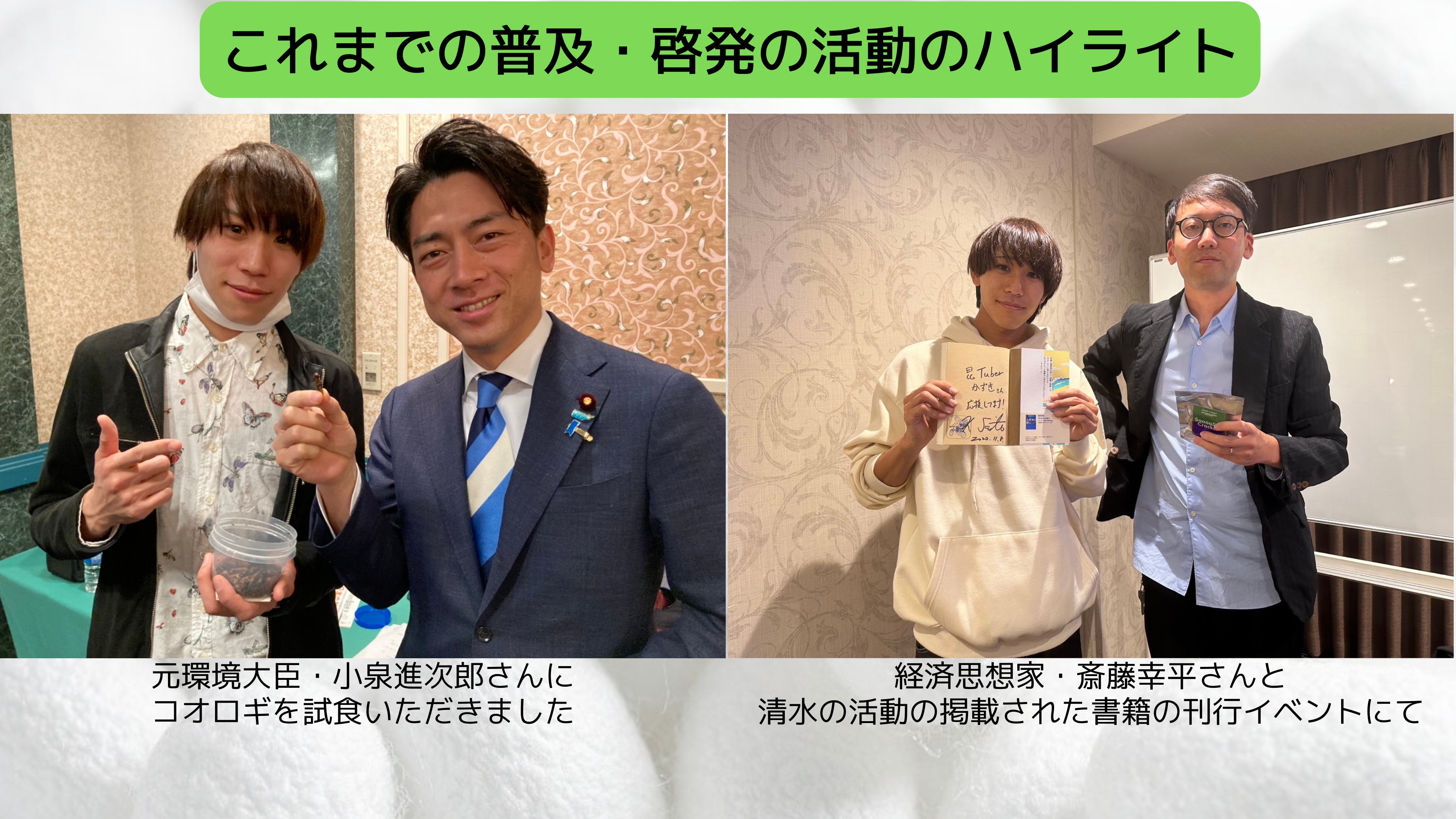 活動を新聞やメディアで取り上げていただけることも増え、昆虫食好きで知られるタレント・井上咲楽さんや、元環境大臣・小泉進次郎さんなど、様々な方と配信してきました。