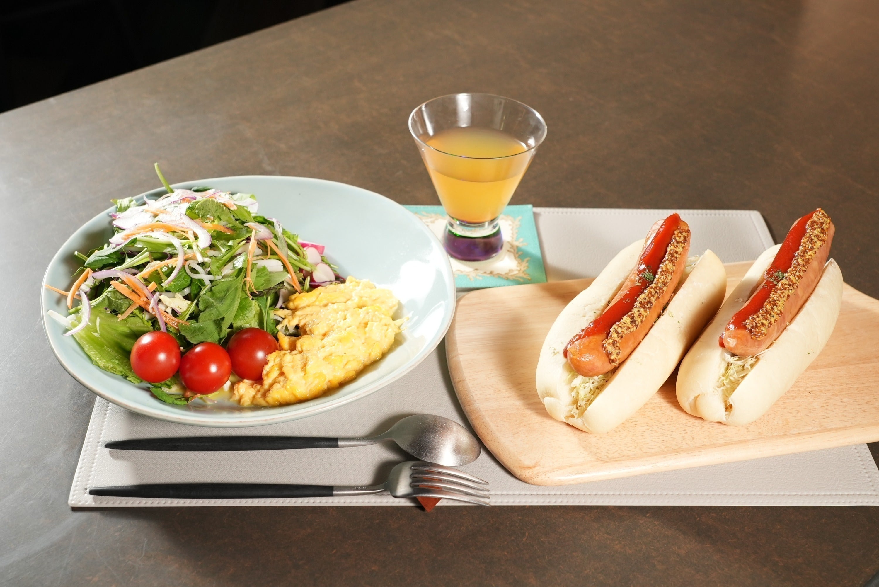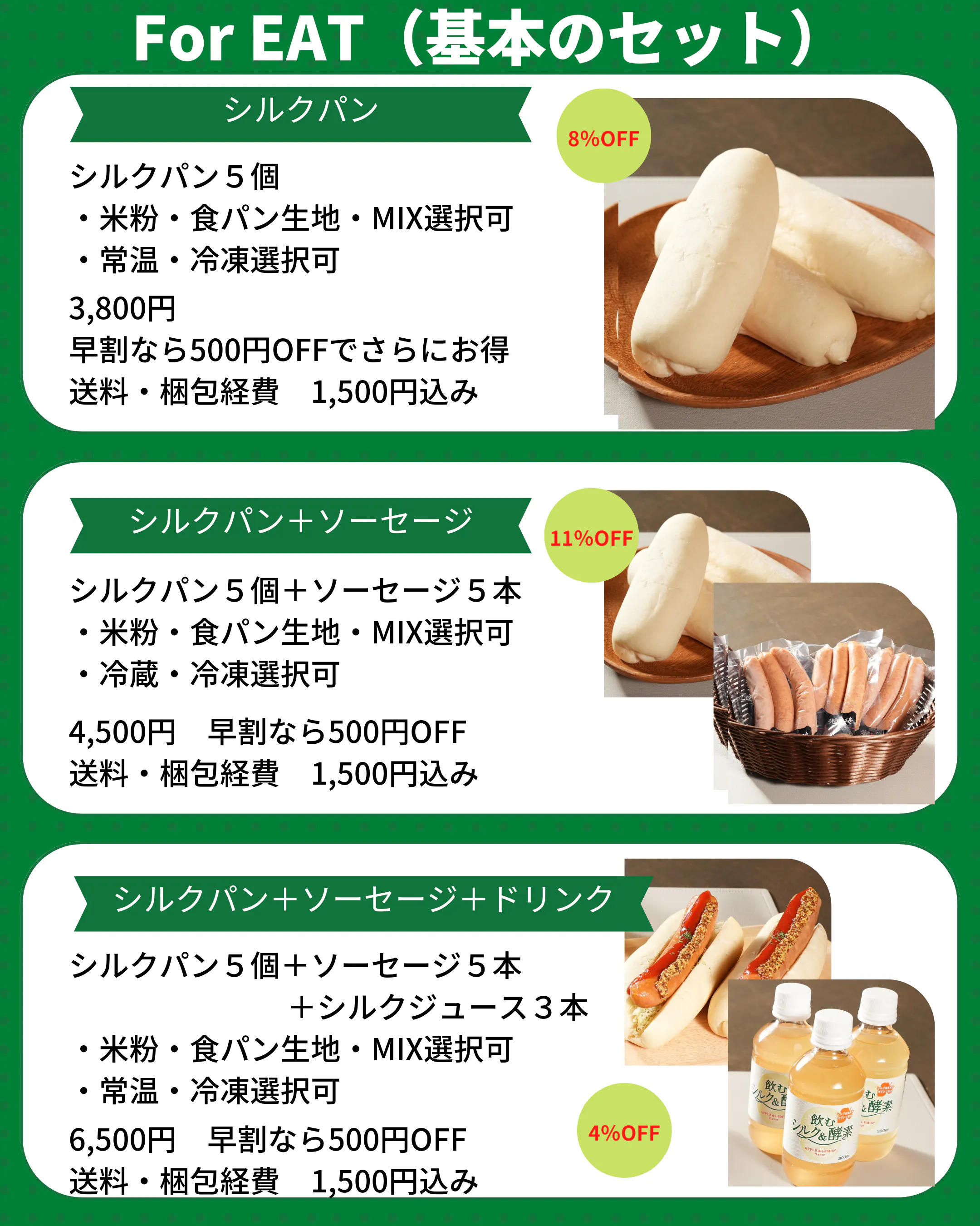 今回、ソーセージをオプションにつけました。もちろんこのソーセージもシルク入りのソーセージです。一見、ジャンキーに見えながら、身体に良い、そんなものに仕上がりました。