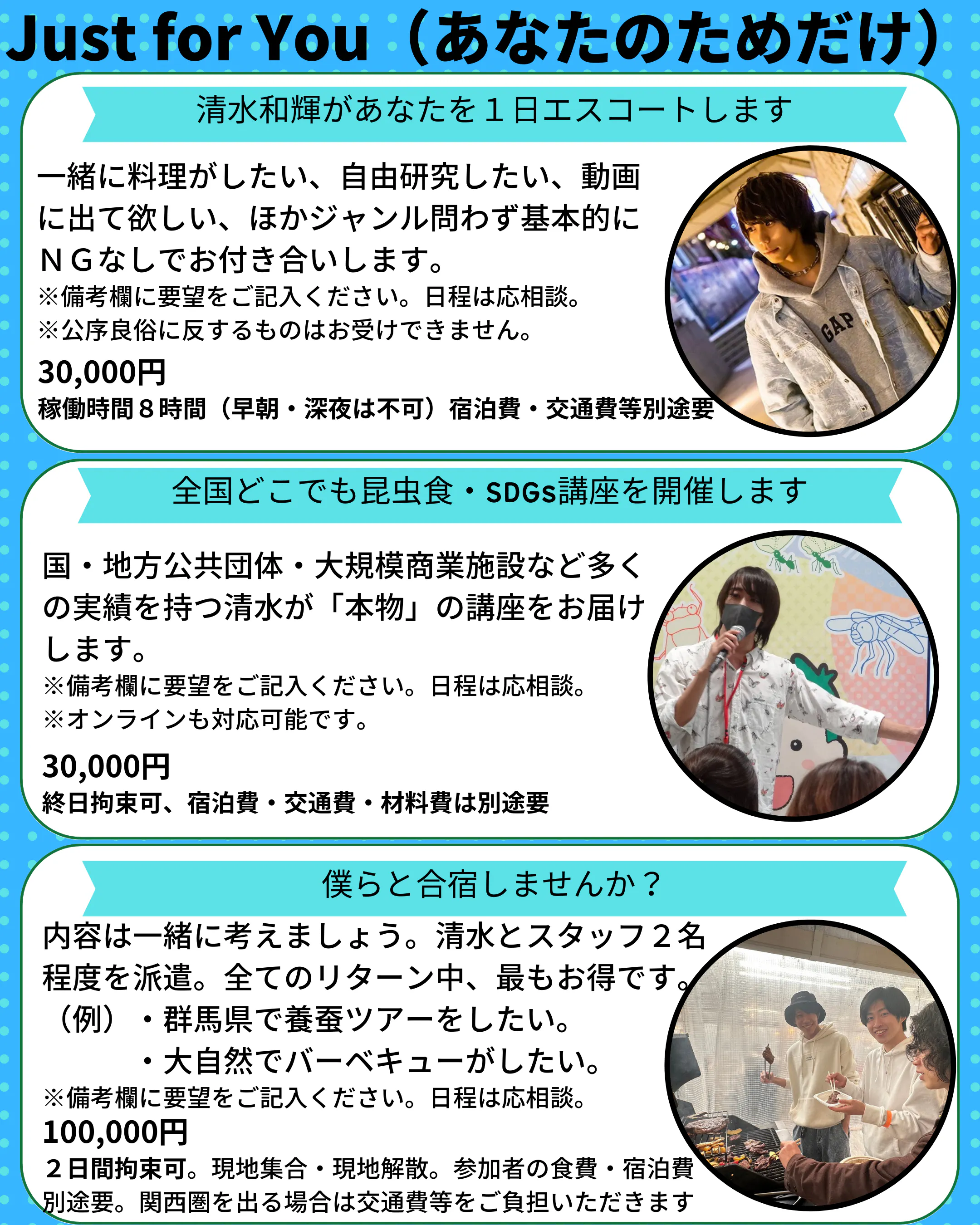 オーダーメイドのイベントについては、ご相談の上、日程を調整します。