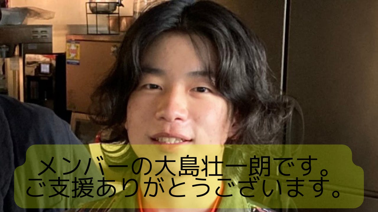 メンバーの大島壮一朗(そういちろう)です!ご支援ありがとうございました!!
