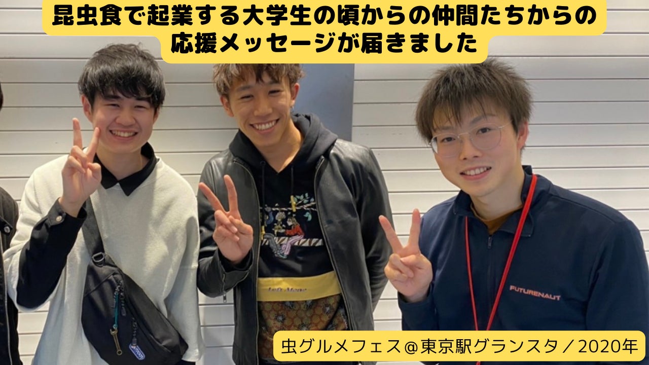 僕自身の在学中の活動の集大成ということで、昆虫食事業にともに取り組んできた同世代の仲間たちがメッセージを寄せてくれました。