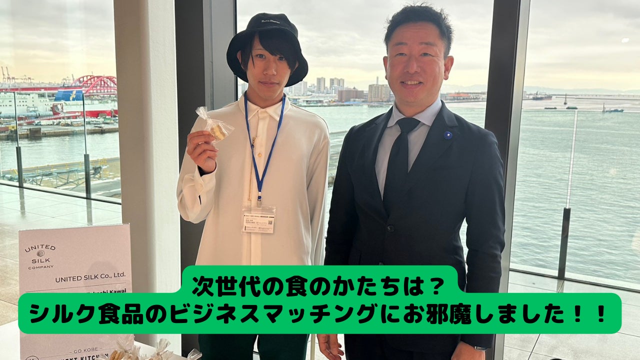 昨日は、神戸でヨーロッパと日本のフードテック企業が集まるイベントがあり、先日、このプロジェクトをご支援いただいたユナイテッドシルク株式会社の河合崇社長が、神戸で出展しているというので、お邪魔してきました。