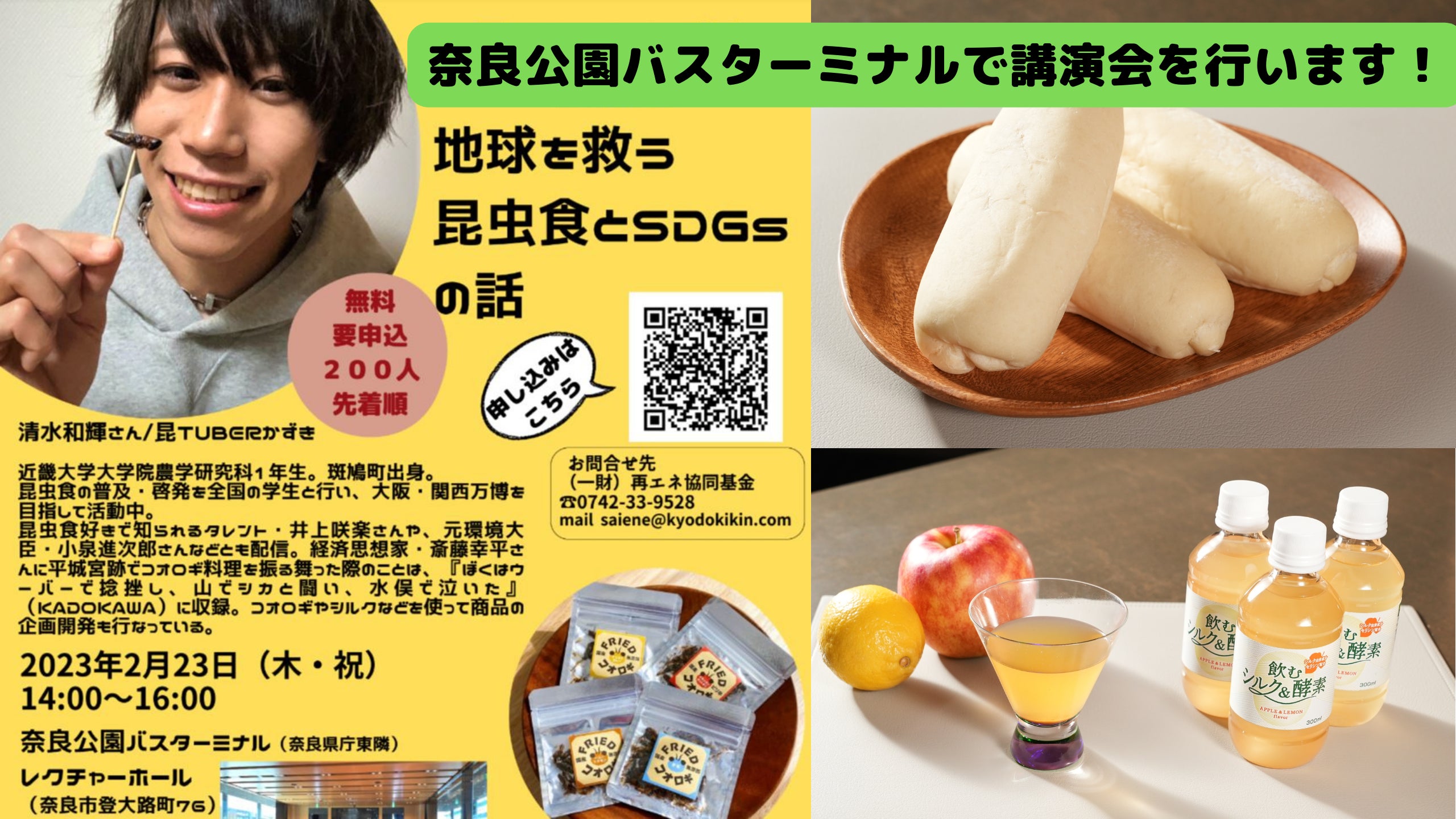 関西で何かイベントができないかということで、スペシャルな企画を行うことになりました!!今回のプロジェクトに応援のメッセージをお寄せいただいた斎藤幸平さんと高嶋耕太郎さんを近畿大学にお招きします。いつも僕のことを気にかけてくださる大学の経営戦略本部の世耕石弘本部長にもご登場いただく予定です。ところで、おふたりが僕の取り組みとどのように関係があるのか、それは出会いに遡ります。斎藤幸平さんとの出会いは、僕がまだ二十歳のころ、『コオロギ料理を食べさせて欲しい』とご連絡をいただき、取材を受けたのがきっかけでした。左が清水、中央が斎藤さん、右はレストランの川辺シェフ斎藤先生の資本主義の本質に切り込む視点は、僕が講座をする際、SDGsに安易に迎合しないように必ずその課題も含めてお伝えするなど、大きな武器になっています。このときに取材を受けたことは、先生の著書『ぼくはウーバーで捻挫し、山でシカと闘い、水俣で泣いた』(KADOKAWA)に掲載されています。高嶋耕太郎さんは、僕にシルクの可能性を説き、シルクの食品を作ってみないかと声をかけていただいた方です。中央左が清水、右が高嶋さん、両脇はNEXT NEW WORLDの担当者今回のプロジェクトは、議論を重ねて辿り着きました。叱咤激励を受けながら、何回も凹みましたが、僕の将来や人生を真剣に心配していただき、ようやくここまでこれました。そんな僕の活動に大きな影響を与えてくださったおふたりを招いて、近畿大学の全面バックアップをいただき、講演会ができること、本当に嬉しく思います。激動の『人新生』において、若者はこれからどうしていけば良いのか、高嶋さんはなぜAmazonを辞めてシンガポールでシルクをテーマに起業をしたのか、僕が2人に迫っていきます。限定数10のリターンとして追加しました!!価格以上の価値があると断言しますので、関西の方はぜひお越しください!!!
