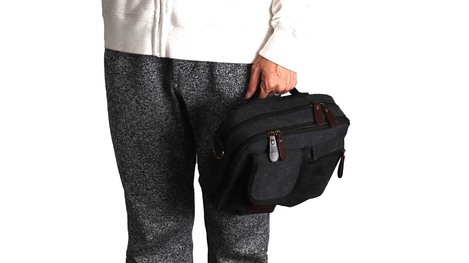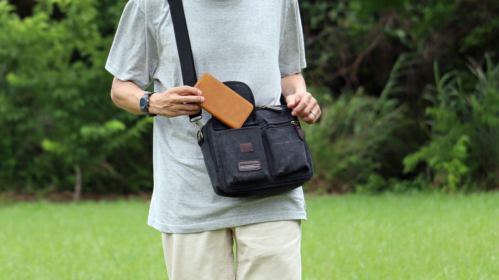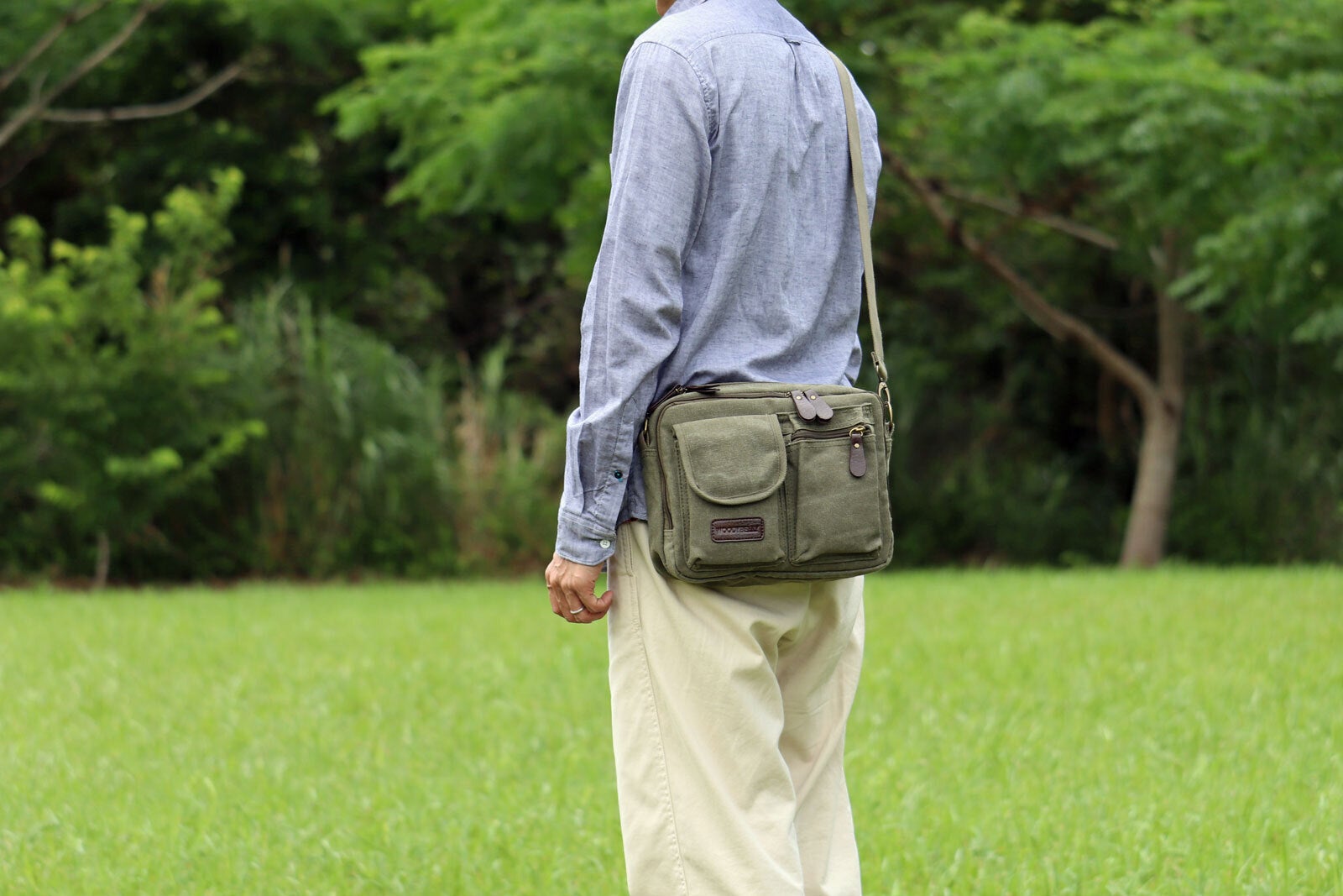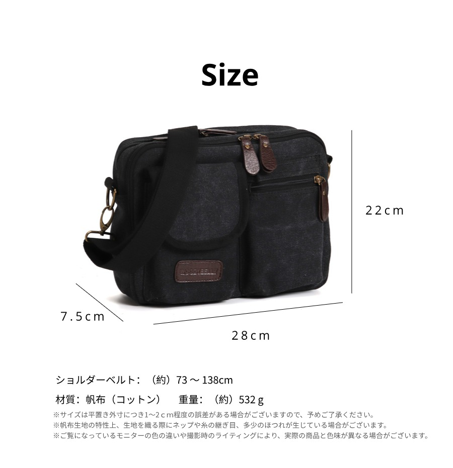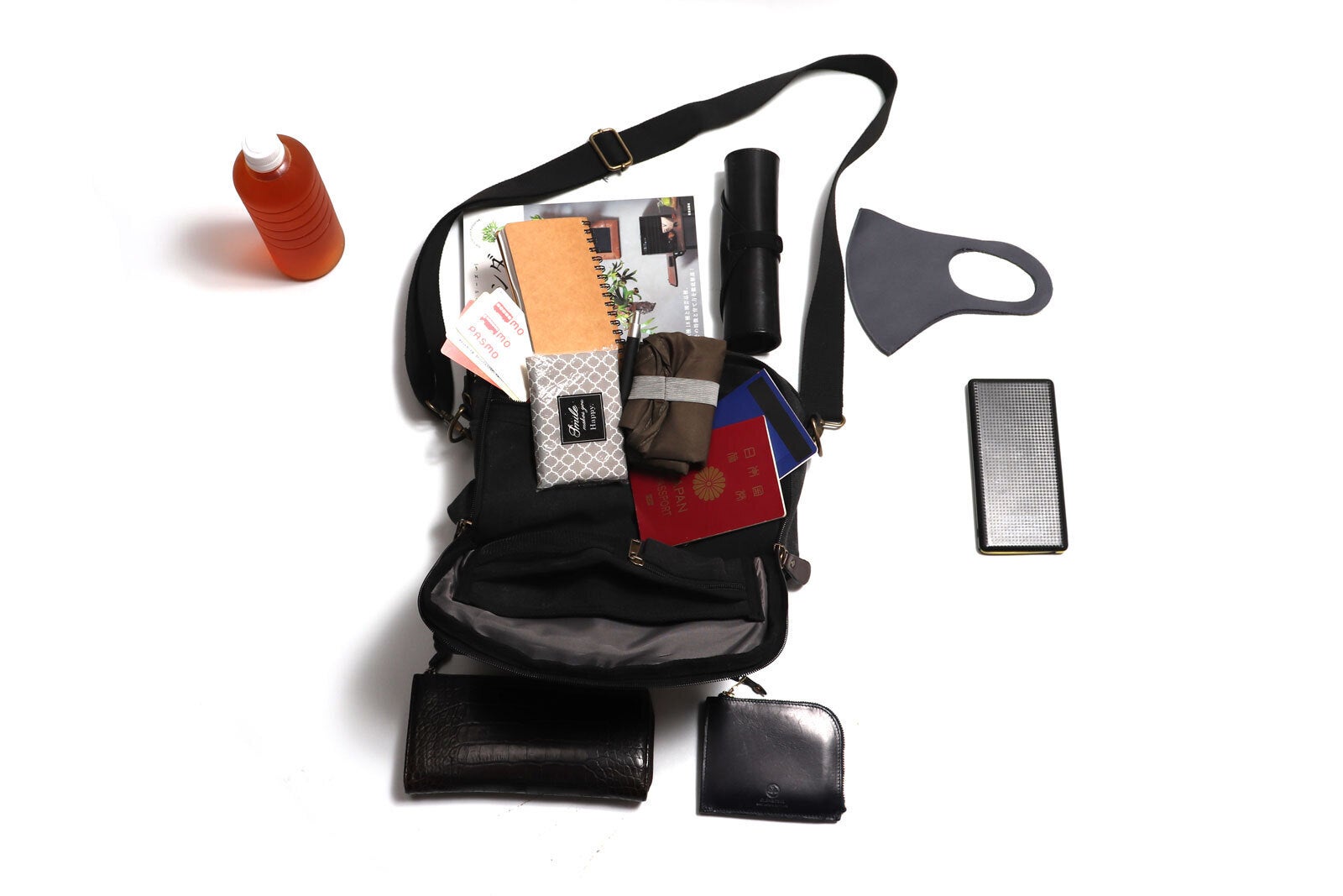 スマホ・ガジェットに即アクセス。分別整頓できる4層構造!軽量帆布ショルダーバッグ