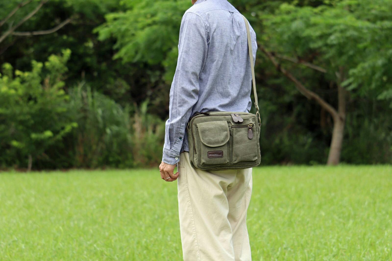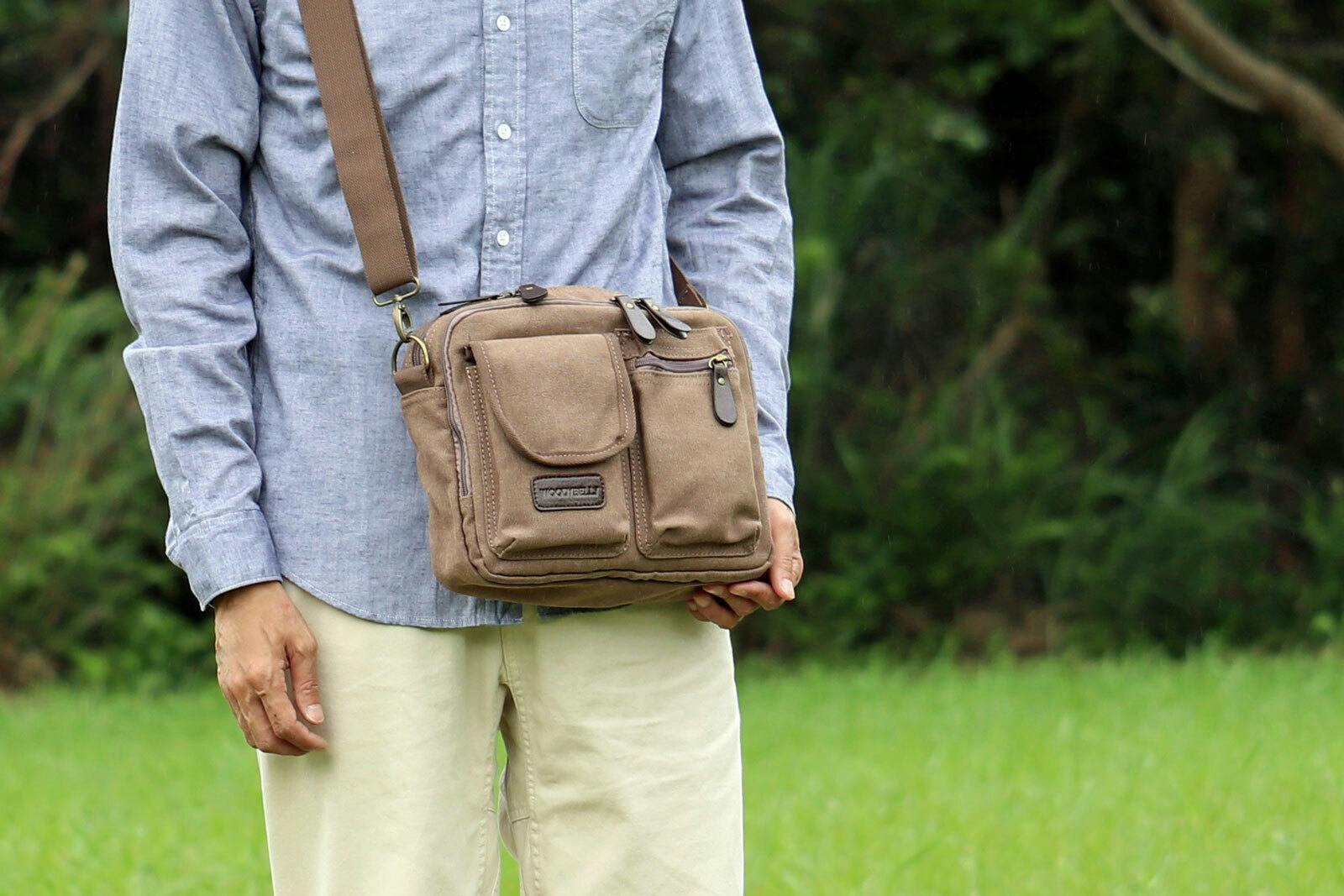 大容量ながら分割収納型でスッキリ「整う」!街でも旅行にも使える軽量帆布ショルダー