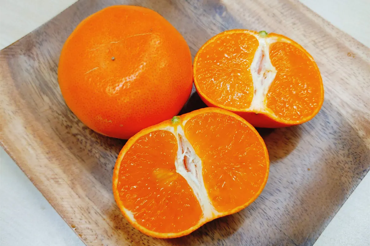 糖度が非常に高く、ほのかな酸味がさっぱりとした後味を演出します。ビタミンCが温州ミカンの2倍! 甘くて果汁がたっぷり。このちょうどいい味わいがクセになり、この季節を待ちわびている根強いファンの多い柑橘です。