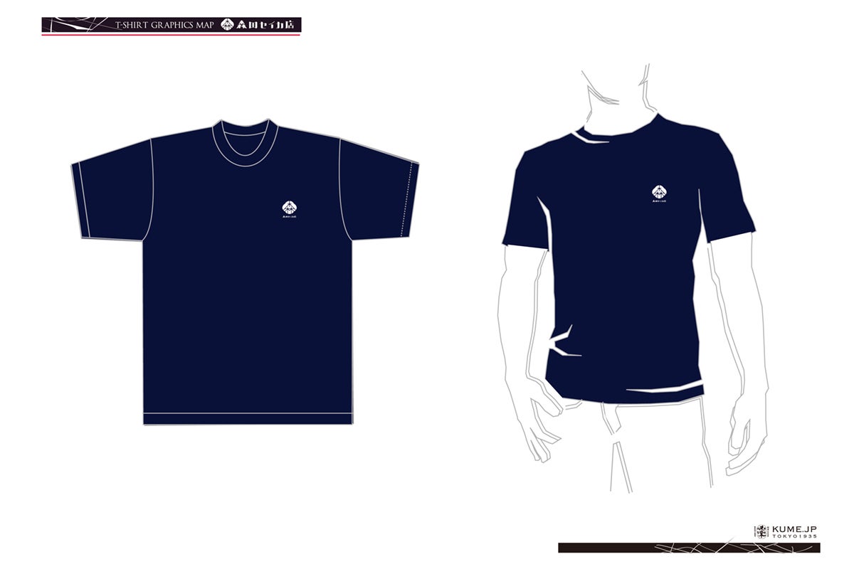 Tシャツの胸元に、森田セイカ店ロゴのワンポイントがあります。色は紺と黒をご用意しました。サイズはS〜XLでお選びいただけます。
