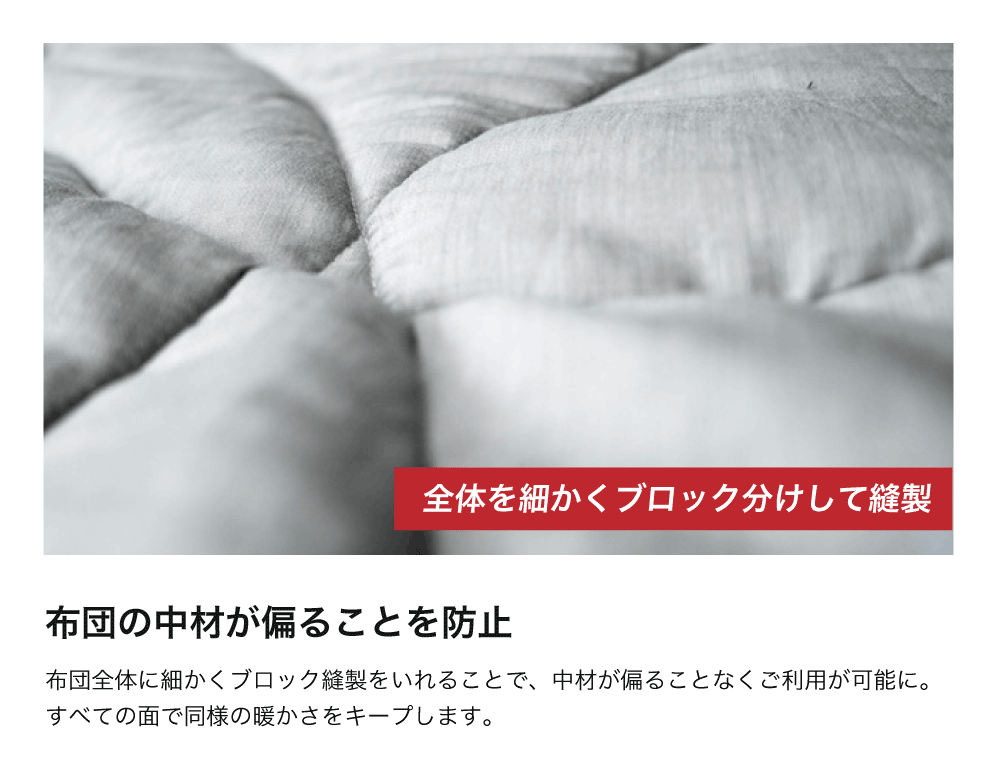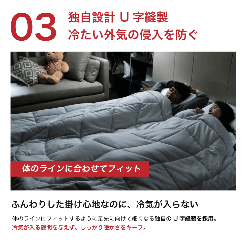 布団カバーを取り付けるためのループがありますので、お好みのカバーとの併用も可能です。