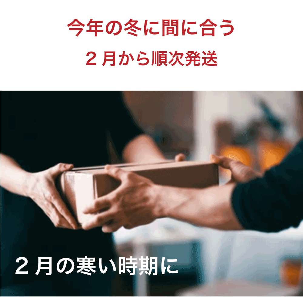 配送は、プロジェクト終了日の翌日(2月1日)より出荷をさせていただく予定です。