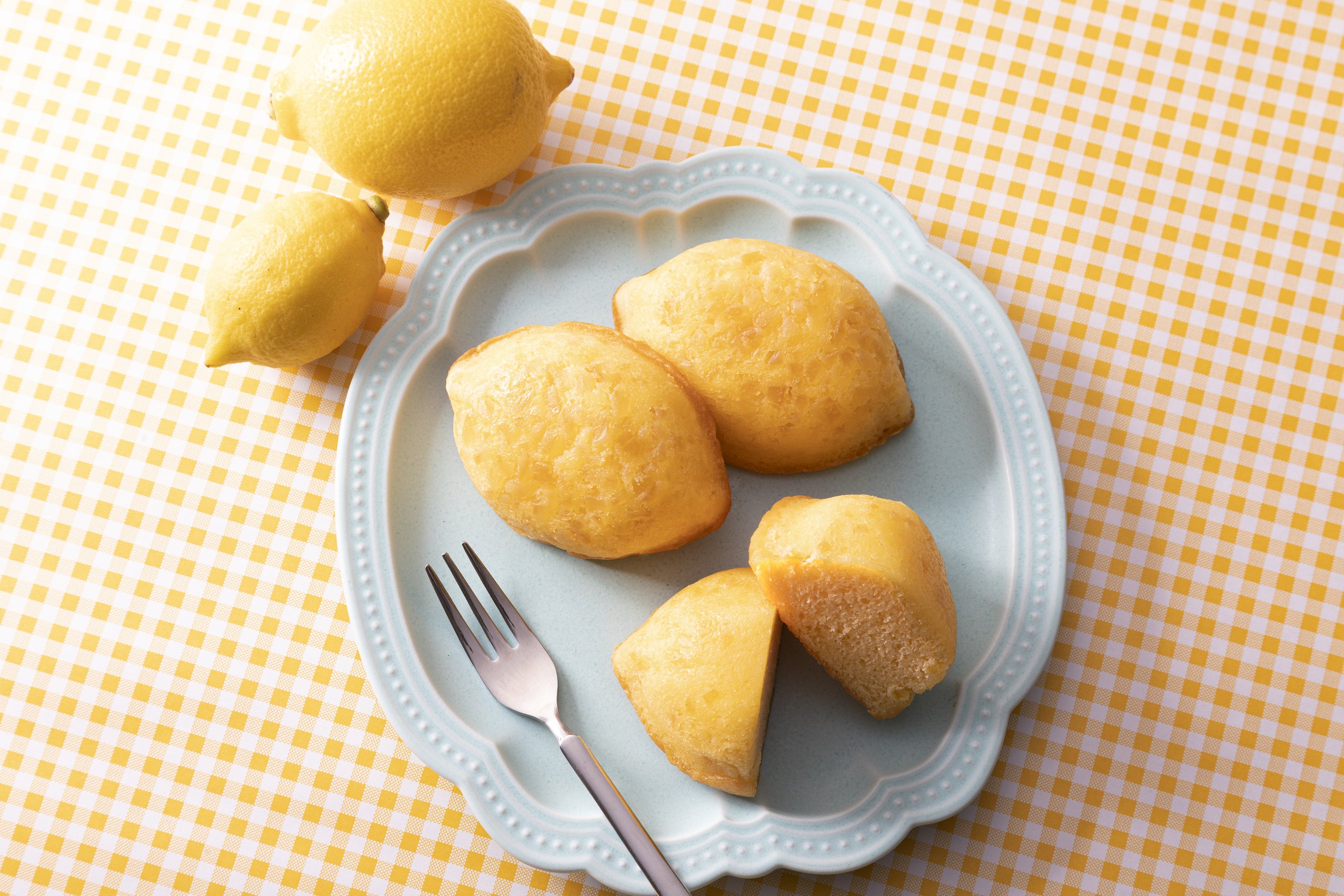 じっくり焼き上げた生地の上面に、砂糖と果汁を合わせた「 グラス 」を塗ることで、砂糖だけが結晶化して表面に残り、レモン果汁が生地に浸透。これが果汁感を高めています。なんと1本に1個半のレモン果汁をたっぷり使用。このため、焼き菓子にありがちなパサついた口当たりは一切なし。しっとり、ふんわりとやさしさに包まれながら、ブワッと広がるレモンのフレッシュな味わいを感じていただけます。生レモンケーキと対極にありながらも、どちらもレモンをこれでもか!と感じられるケーキとなっています。
