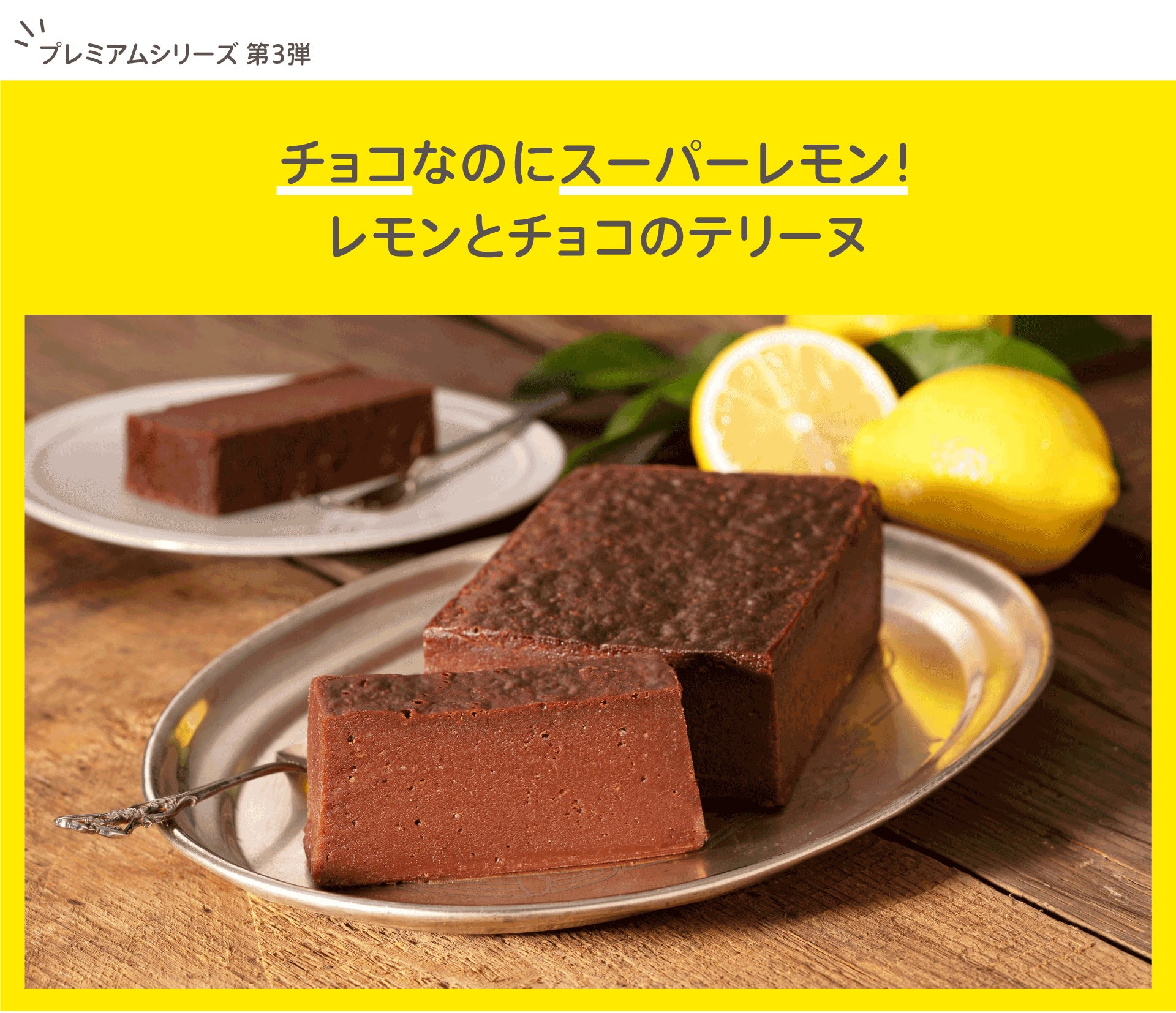 チョコなのにスーパーレモン! という新境地を開拓したのがこの『 紀州プレミアムレモン・チョコテリーヌ 』。チョコレートソムリエの札谷加奈子さんを通じて出会った「カカオシロップ」がアクセントのテリーヌです。