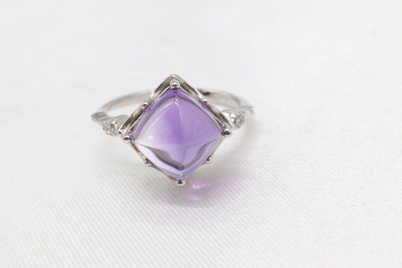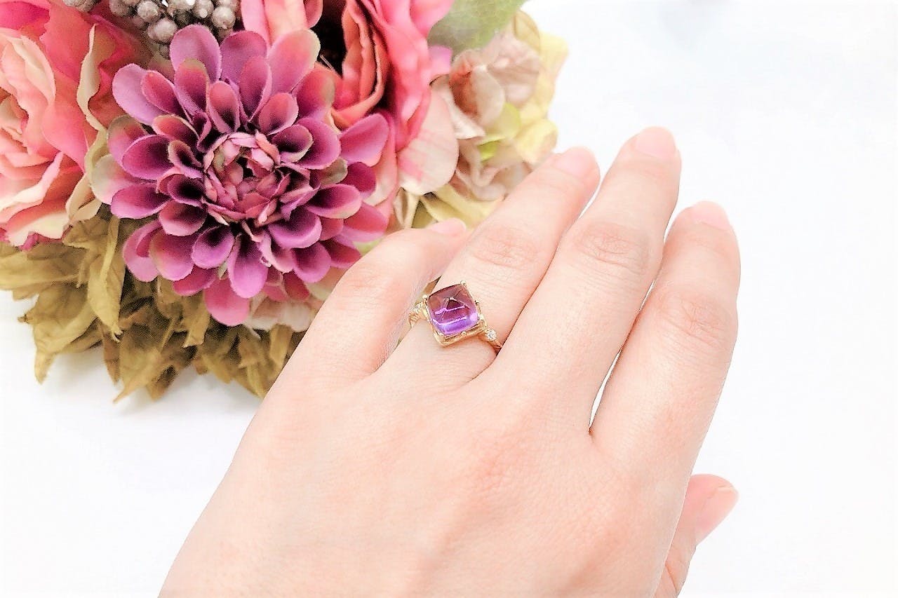 非常に綺麗な"ファンシーカット"でアメジストをより綺麗に魅せる
