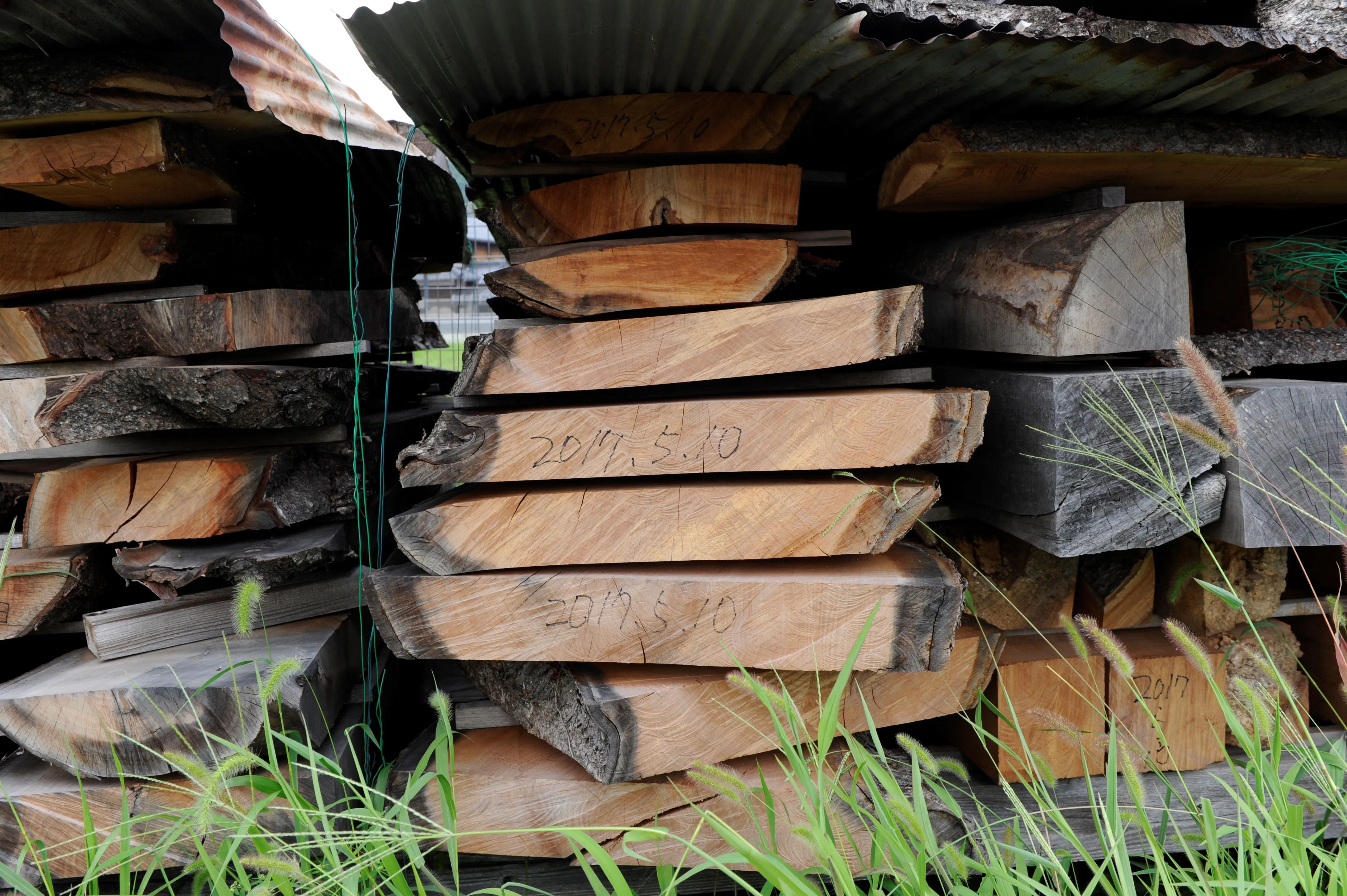 滋賀県湖北の名峰・伊吹山の麓で育った桜の木を切って、2~3年間、天然乾燥させたものを材料に使っています。桜を使うのは独特の「つるつる感」が独楽に適しているからであり、長い時間をかけてわざわざ天然乾燥するのは、機械乾燥だとどうしても木肌にヒビ割れが出来てしまうからです。