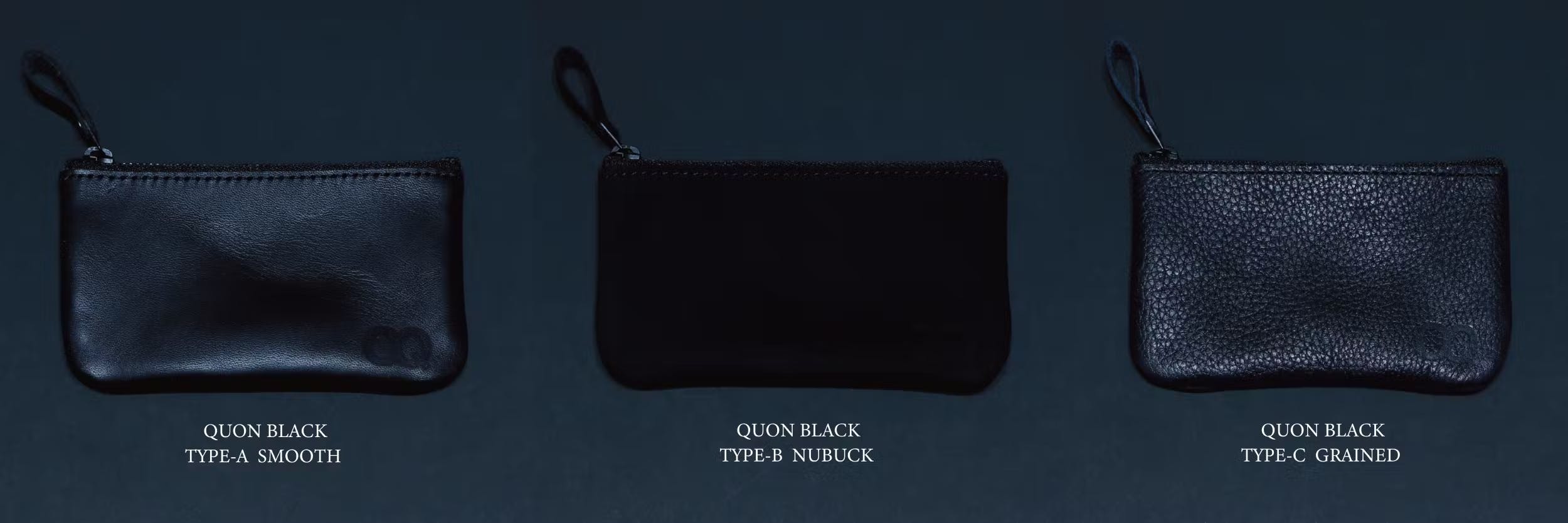 加工違いの黒牛革を3種で展開。