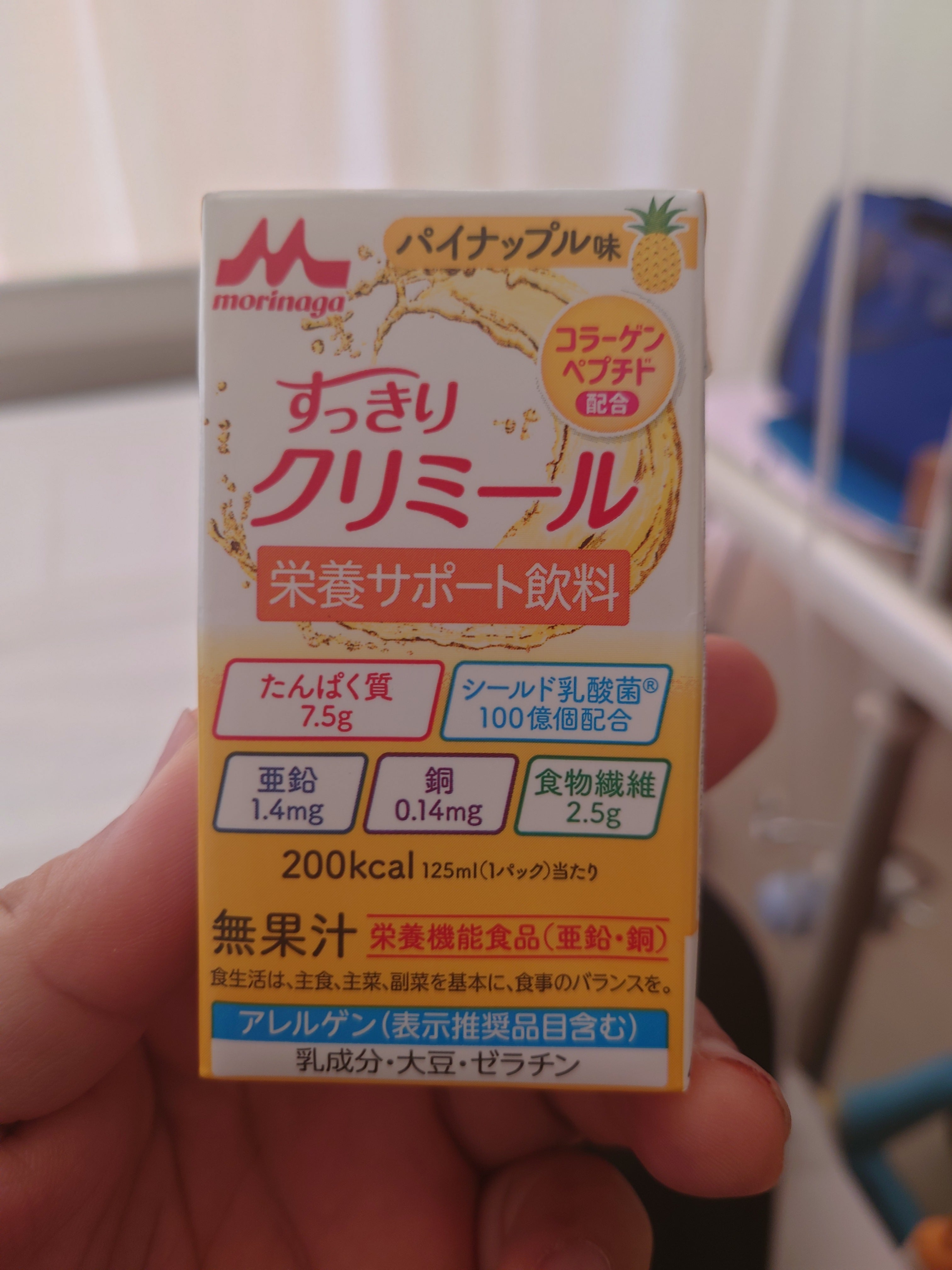 本日も復活に向けて頑張っております!本日はようやく熱が下がりだいぶ体調も戻ってきました!ベットの上の生活がやっとだったのですが調子のいい時は病棟の廊下を何周も歩けるようになりました!そして昼からようやく絶食が回避されパイナップル味のクリミールを飲むことが出来ました!夜ご飯はグレープ味(笑)徐々にではありますが復活に向けて頑張っていってるので応援よろしくお願いします!