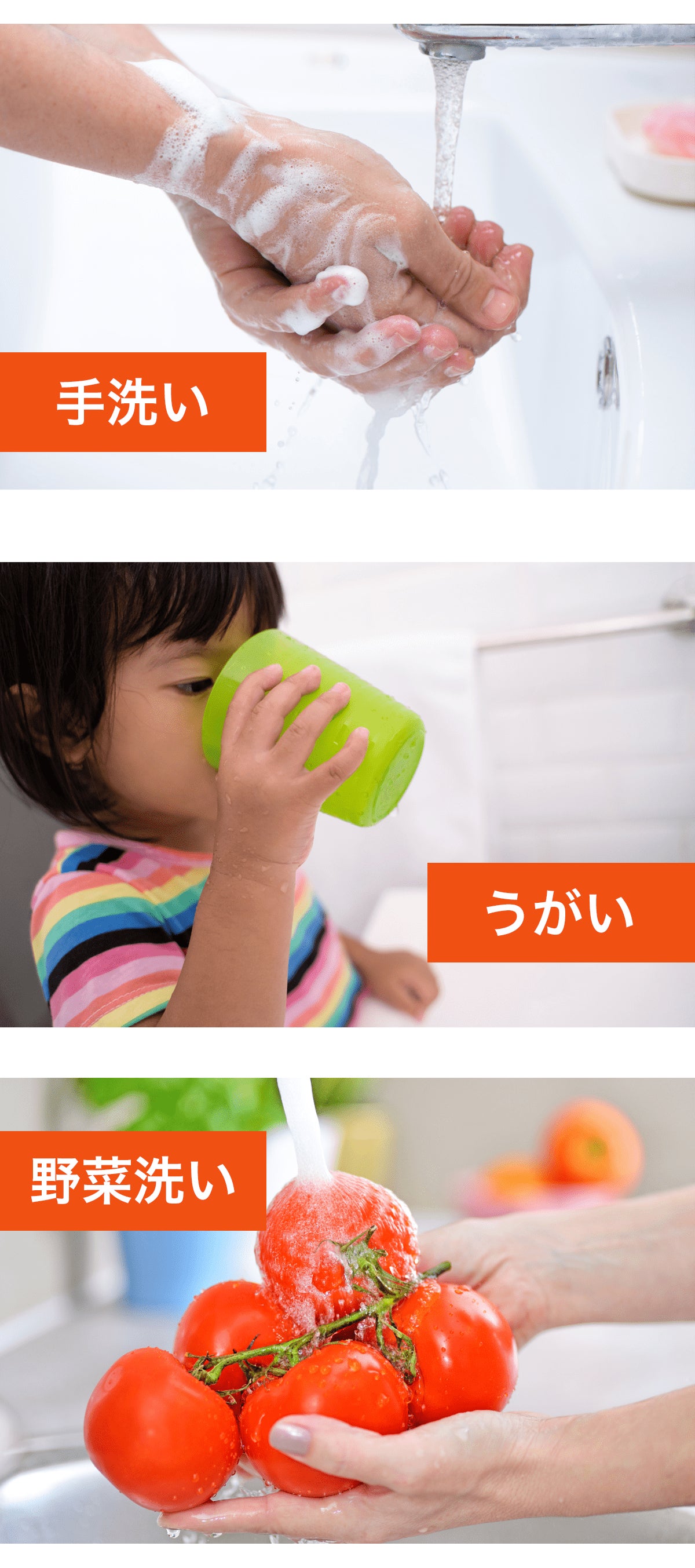 手洗い、うがい、野菜、食器洗いなど、様々なシーンで効果を発揮してくれるでしょう。