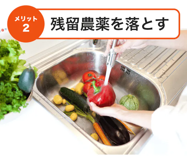 らくらく♪取り付けで「残留農薬を見逃さない」特殊なマイクロウォーターに!より楽しく、健康的な食生活を送ることができます。