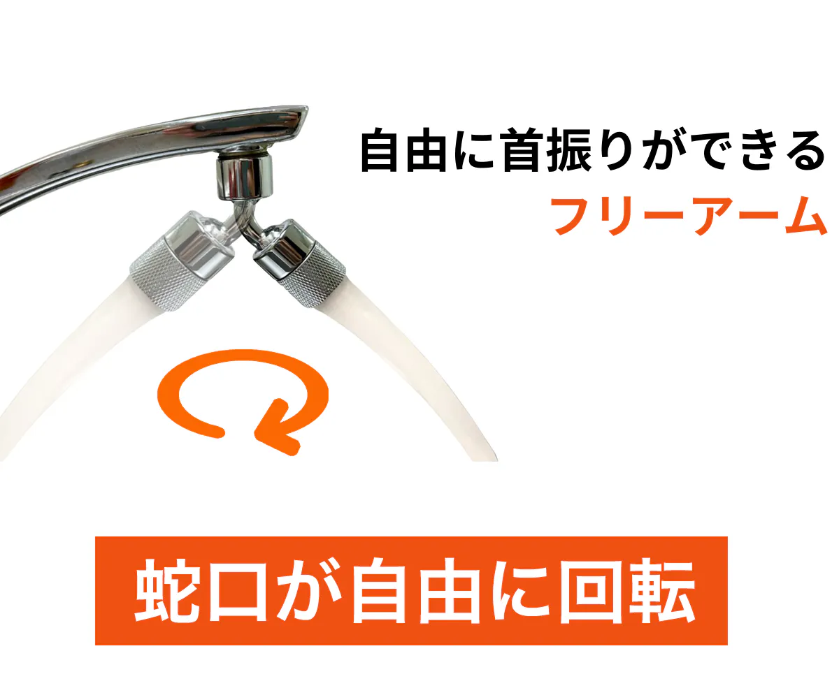自由に回転可能なフリーアーム。あらゆる角度で水が出せます。