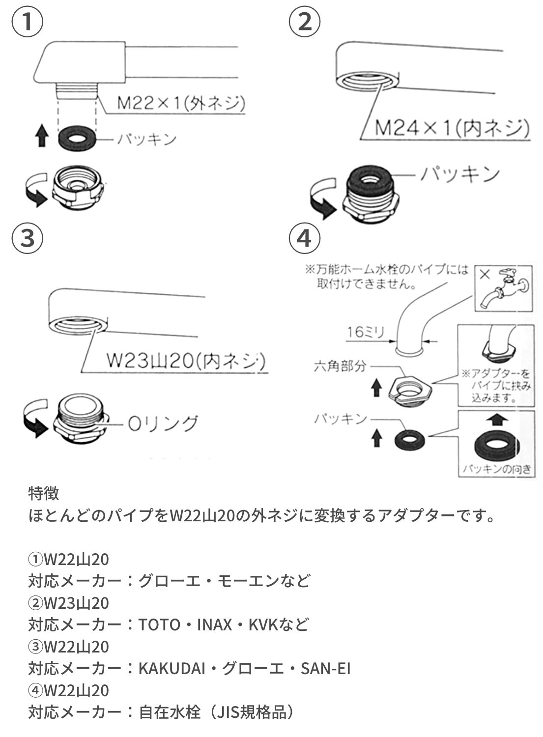 ※水栓メーカーによっては対応できない場合がございます。その際は別途対応品をご使用ください。