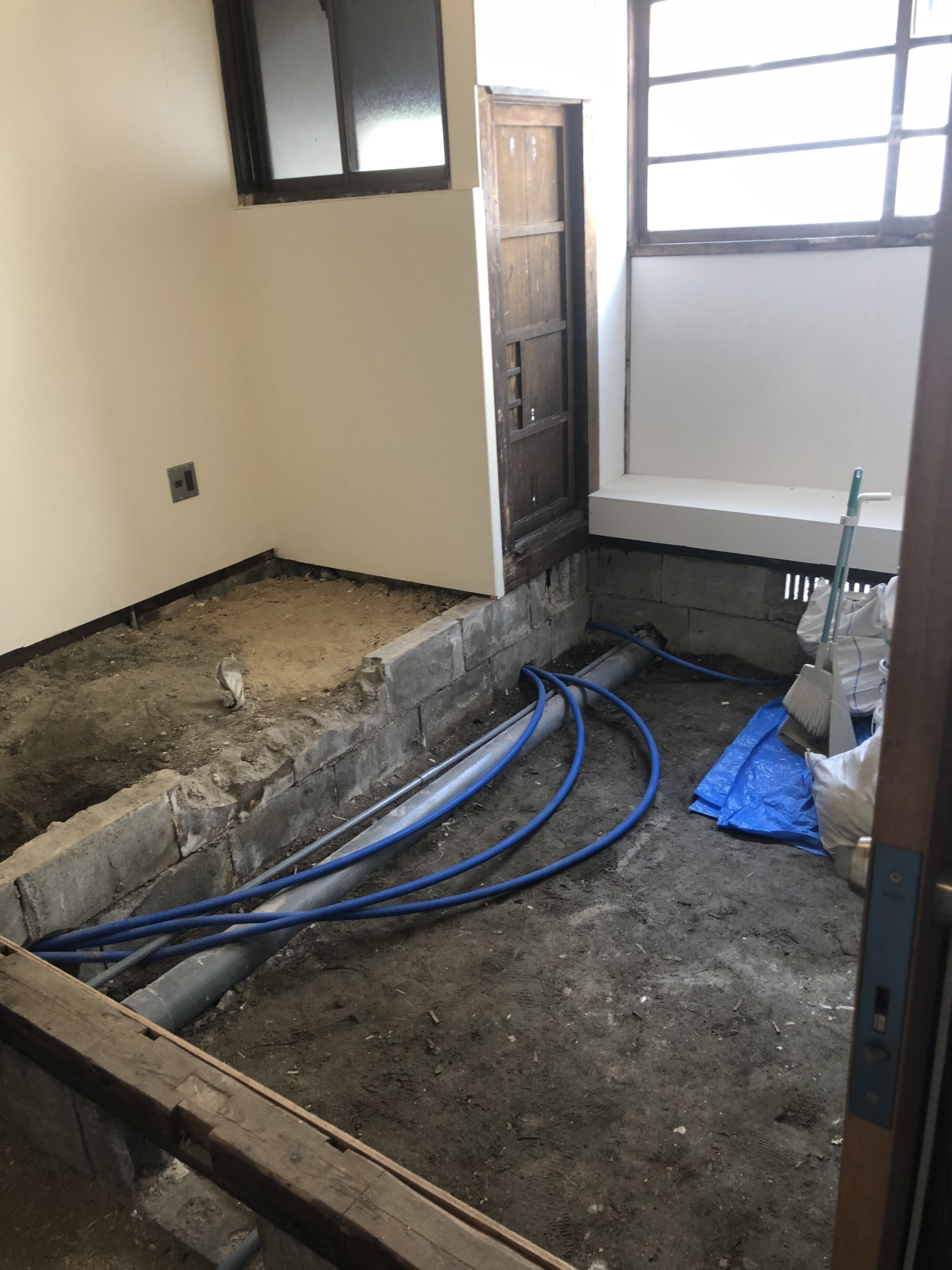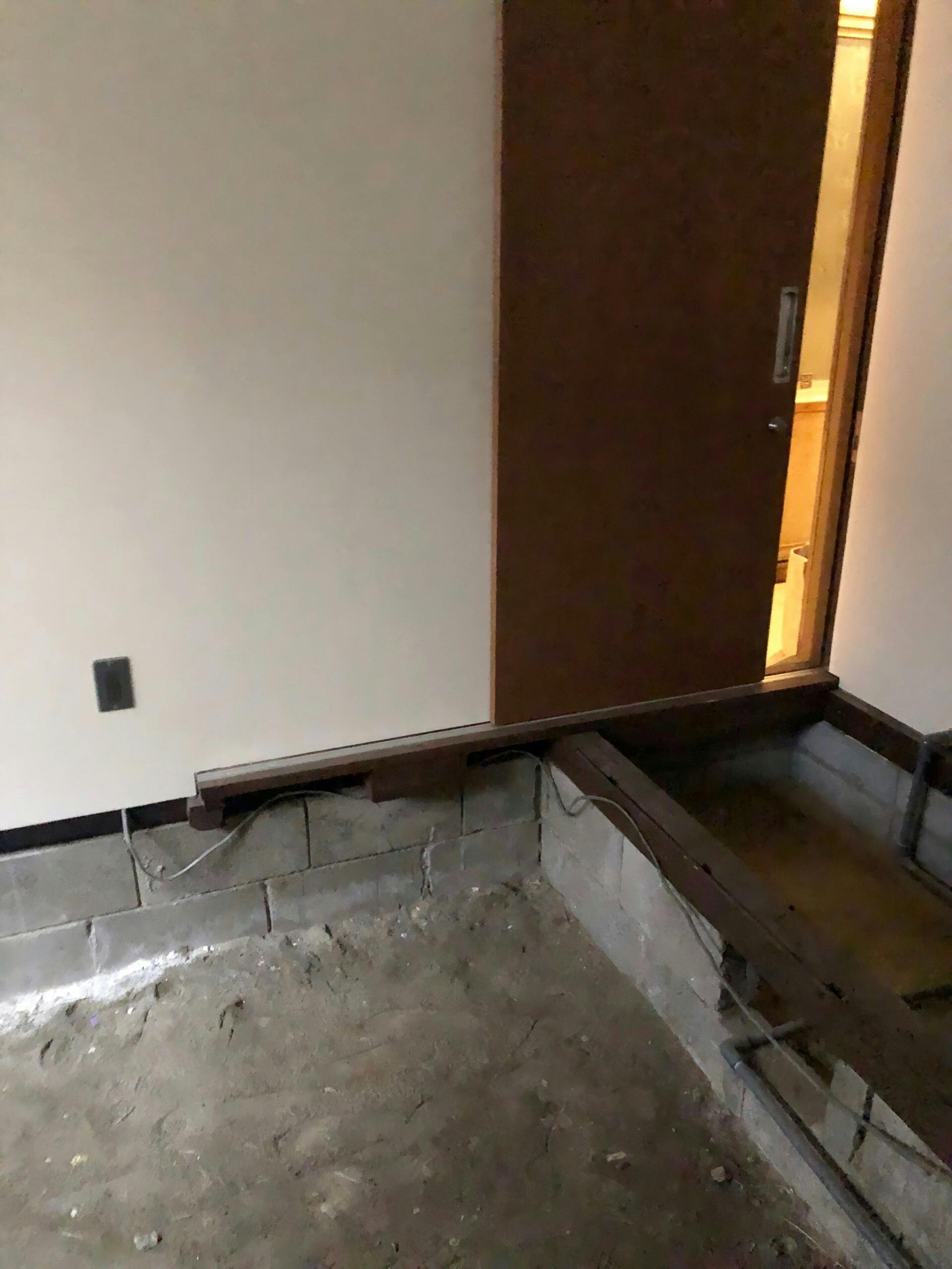 下の画像は、cobaco六本松101号室の借りたままの状態です。ご覧頂ける通り床がない状態です。