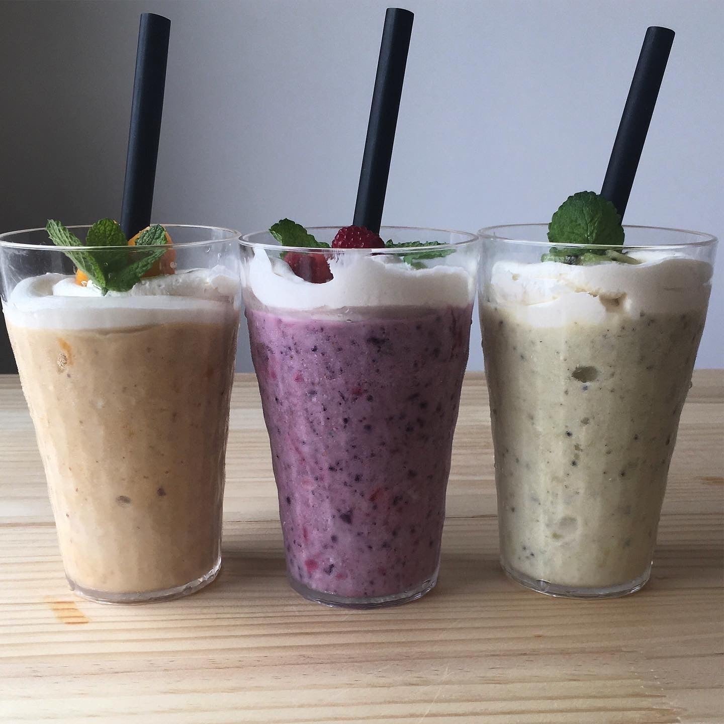 これも定番、無農薬玄米で作った甘酒と豆乳とフルーツを合わせたVEGANシェイク